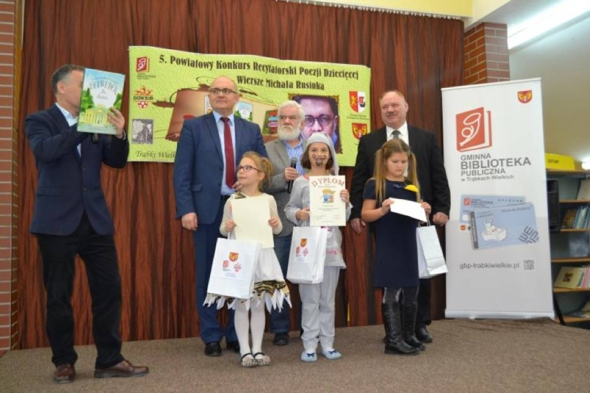 30 listopada 2017 r. uczniowie klas 0-III Szkoły Podstawowej w Cedrach Wielkich uczestniczyli w finale 5. Powiatowego Konkursu Recytatorskiego Poezji dla Dzieci, którego organizatorem była Szkoła Podstawowa im. K. Pawłowskiej w Trąbkach Wielkich oraz Gminna Biblioteka Publiczna w Trąbkach Wielkich. Konkurs miał na celu rozbudzanie zainteresowania twórczością polskich poetów oraz zachęcanie dzieci do prezentacji swoich umiejętności i talentów. W tegorocznej edycji konkursu zadaniem uczestników było zaprezentowanie dowolnego wiersza Michała Rusinka - literaturoznawcy, tłumacza, pisarza, sekretarza nieżyjącej już poetki Wisławy Szymborskiej.