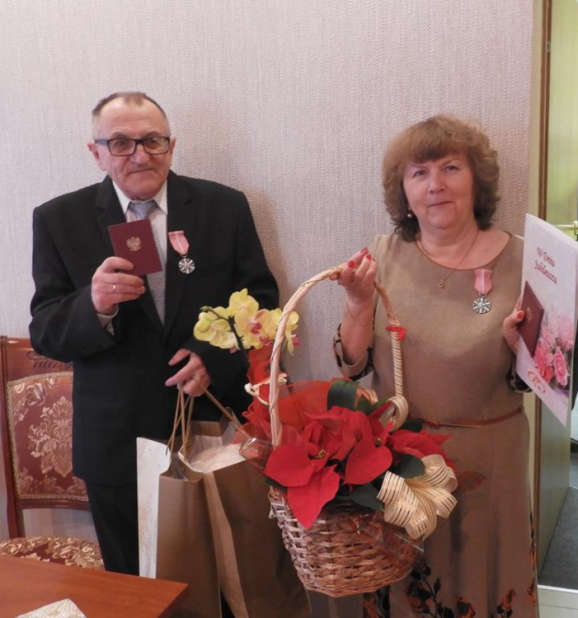 W dniu 15 grudnia 2017 r. w Urzędzie Gminy, Państwo Alicja i Józef Sokół otrzymali odznaki za 50-lecie Pożycia Małżeńskiego. W imieniu Prezydenta RP wręczył je Wójt Gminy Pan Janusz Goliński. 09 grudnia 1967 r. roku Państwo Sokół z miejscowości Błotnik złożyli sobie przysięgę małżeńską. Po 50 latach wspólnego życia, przyszedł czas na chwilę refleksji nad wspólnie spędzonym czasem. Wzajemna miłość i szacunek, jakim się darzą, są wzorem do naśladowania dla młodszych pokoleń. Wójt Gminy wraz z Zastępcą Kierownika Urzędu Stanu Cywilnego złożyli jubilatom serdeczne życzenia zdrowia, szczęścia oraz miłości. Gratulowali również wspaniałej i kochającej rodziny, która czerpie wzorce z ich życiowych doświadczeń.