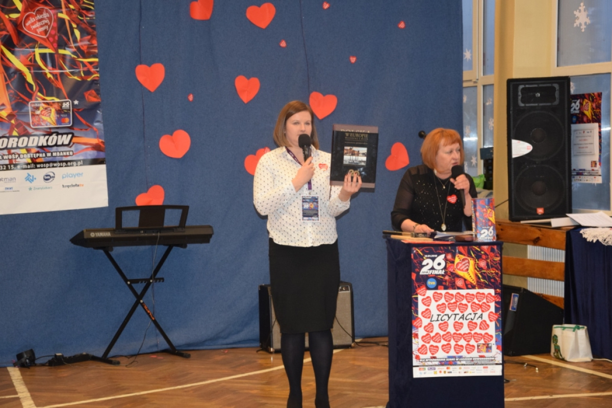 W trakcie Finałowego Dnia Wielkiej Orkiestry Świątecznej Pomocy odbyły się trzy wejścia aukcyjne, które cieszyły się ogromnym zainteresowaniem hojnie licytujących mieszkańców Gminy Cedry Wielkie. Wylicytowano m.in. piłkę z podpisem Jerzego Dudka (600 zł), spacer z przewodnikiem po budowanym moście w Kiezmarku (550 zł), plakat polskiej reprezentacji piłki nożnej z podpisami Zbigniewa Bońka oraz Adama Nawałki, tort ufundowany przez właściciele restauracji Cedrowy Dworek (310 zł). Dużym zainteresowaniem cieszyły się przedmioty przesłane przez WOŚP. Wylicytowano koszulki 26 Finału Wielkiej Orkiestry Świątecznej Pomocy, książki WOŚP oraz płytę z koncertu Woodstock 2017. Sama licytacja wsparła WOŚP kwotą 6018 zł.