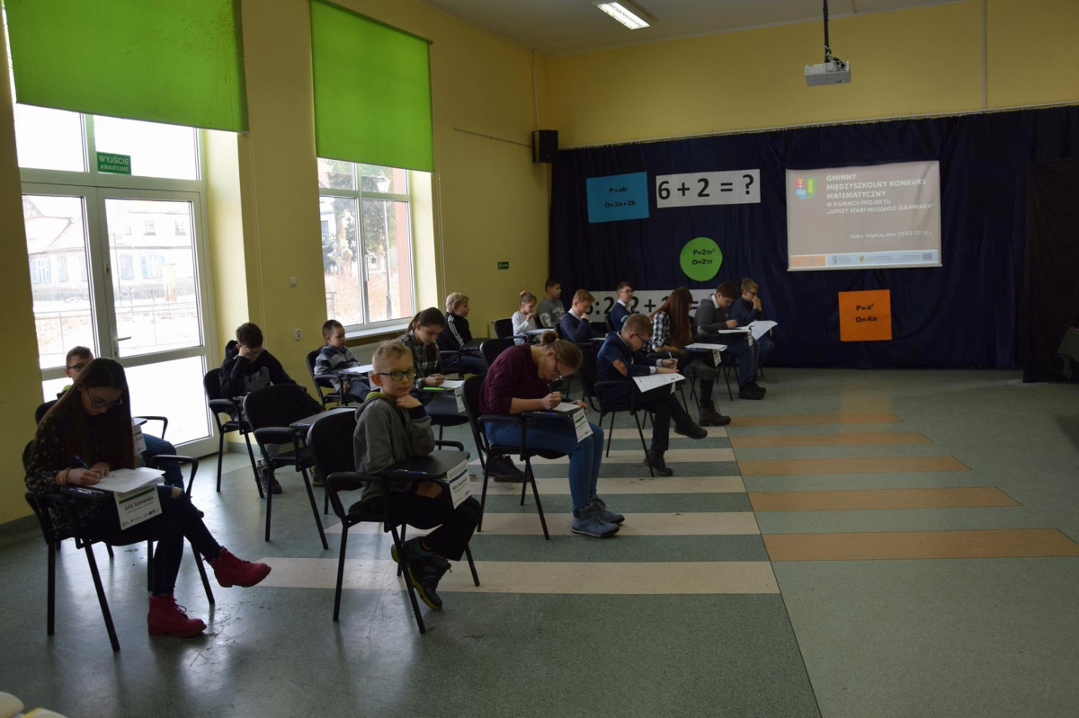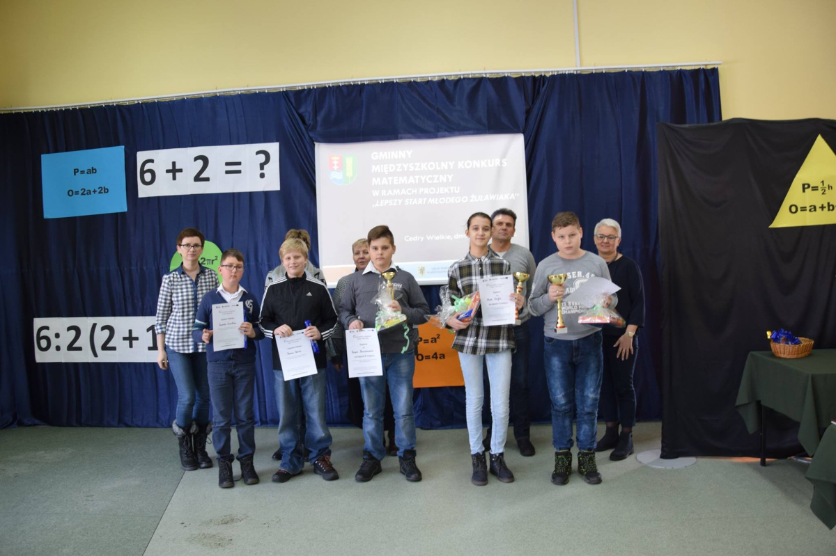 W konkursie wzięło udział 16 uczniów z 4 szkół gminnych, uczestniczących w projekcie, którzy na poziomie konkursu szkolno-gminnego zdobyli największą liczbę punktów i tym samym awansowali do konkursu międzyszkolnego. Uczniowie rywalizowali w trzech kategoriach klasowych: I-III, IV-VI oraz VII-Gimnazjum. Ciekawe zadania i łamigłówki konkursowe dostosowane były do norm programowych poszczególnych klas. Konkurs matematyczny miał formę testu z zadaniami otwartymi i zamkniętymi, w których była jedna prawidłowa odpowiedź. Uczestnicy mieli do wykonania 25 i 26 zadań w czasie 60 minut.