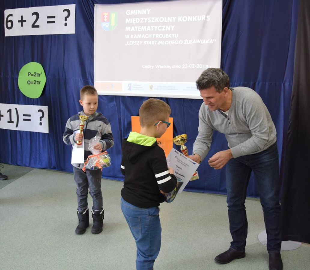 Młodzi matematycy ze wszystkich szkół z terenu Gminy Cedry Wielkie zmagali się z zadaniami matematycznymi 22 lutego 2018 r. o godz. 10.00 w Żuławskim Ośrodku Kultury i Sportu w Cedrach Wielkich podczas MIĘDZYSZKOLNEGO KONKURSU MATEMATYCZNEGO W RAMACH PROJEKTU „LEPSZY START MŁODEGO ŻUŁAWIAKA!”. Jego celem było sprawdzenie umiejętności uczniów oraz zachęcenie do rozwijania pasji matematycznych, samodzielności, odkrywania ukrytych talentów oraz rozwinięcia nawyku twórczego i logicznego myślenia. Konkurs matematyczny to sposób na rozbudzenie motywacji do rozwoju zdolności ścisłych oraz sposób na czerpanie radości z odkrywania tajników królowej nauk. Dodatkowo pozwala wyłonić małych geniuszy w tej dziedzinie. Z kolei nagrody mają ich zachęcać do rozwijania swoich umiejętności.