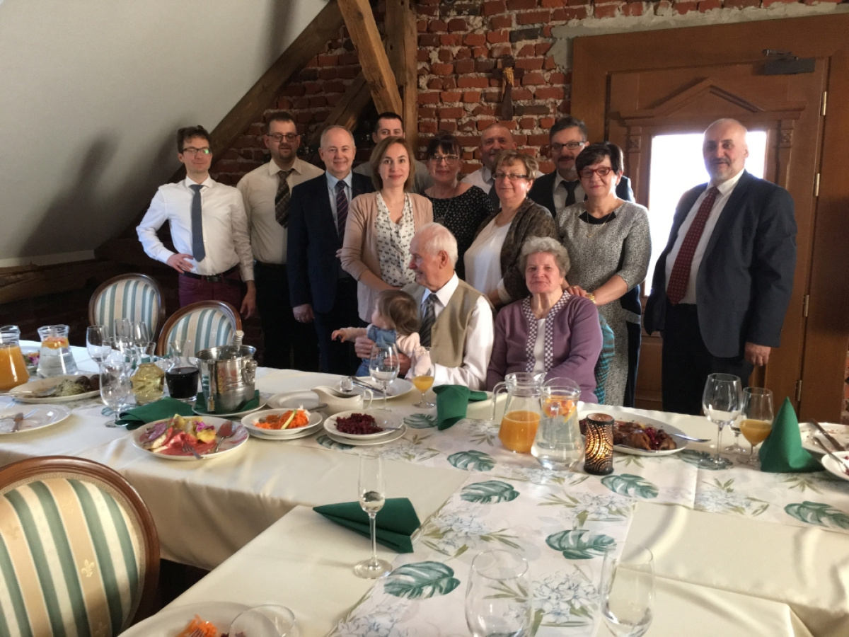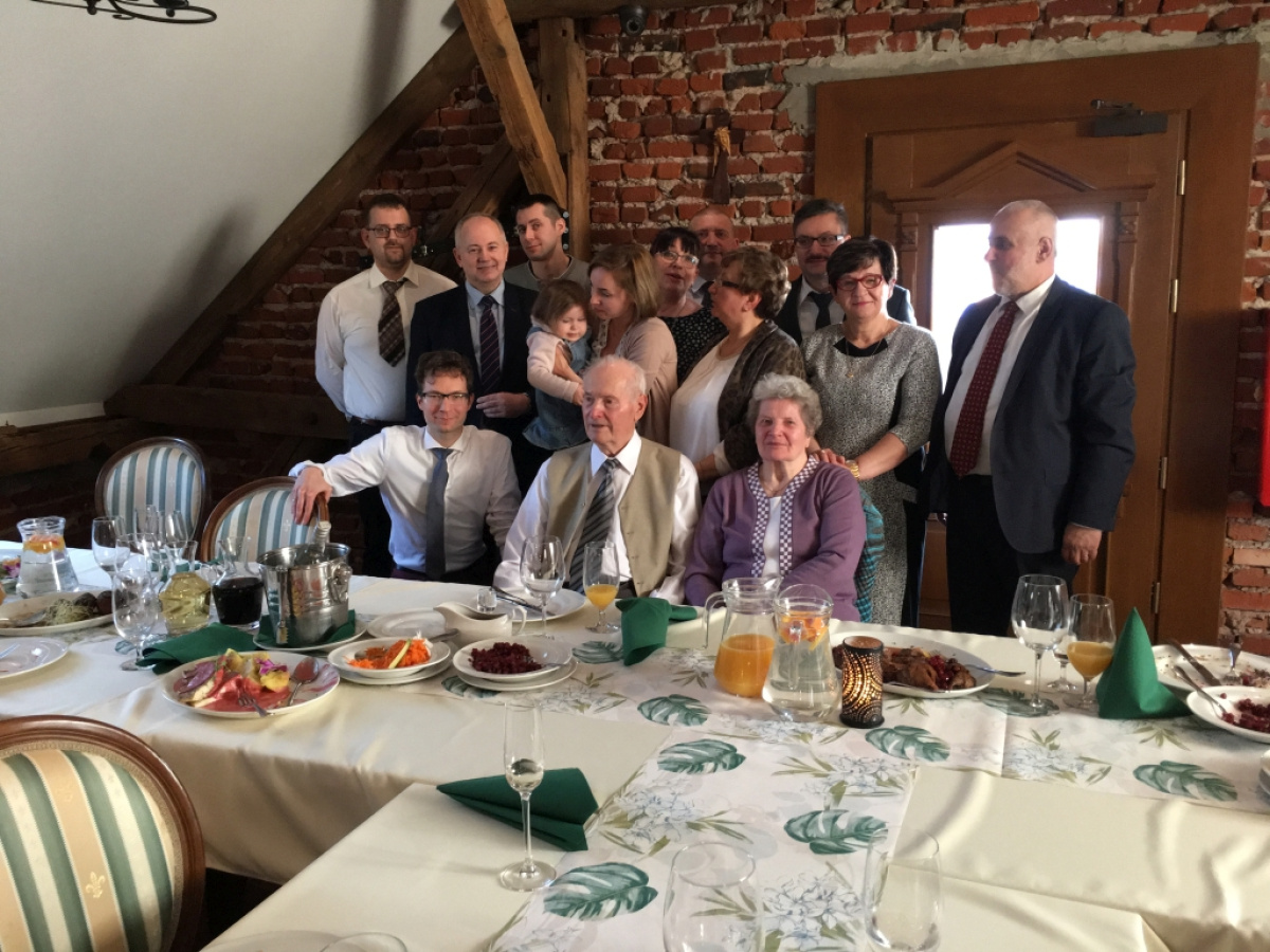 Do grona 90-latków w dniu 27.02.2018 r. dołączył Pan Czesław Świątek zamieszkały w Cedrach Wielkich. W dniu 03.03.2018 r. delegacja w osobie Wójta Gminy Cedry Wielkie Pana Janusza Golińskiego oraz Kierownika Gminnego Ośrodka Pomocy Społecznej w Cedrach Wielkich Pani Grażyny Bereza udała się do Jubilata z bukietem kwiatów oraz okolicznościowym upominkiem, składając życzenia w imieniu własnym oraz mieszkańców gminy. Spotkanie jubileuszowe odbyło się w Cedrowym Dworku w Cedrach Wielkich w gronie najbliższych osób. Spotkanie upłynęło w miłej atmosferze, przy wspomnieniach z lat młodzieńczych i obecnych.