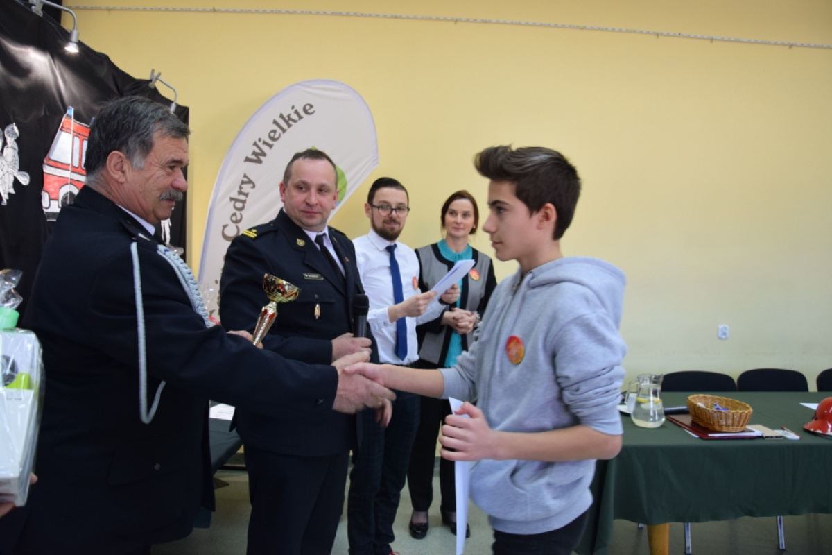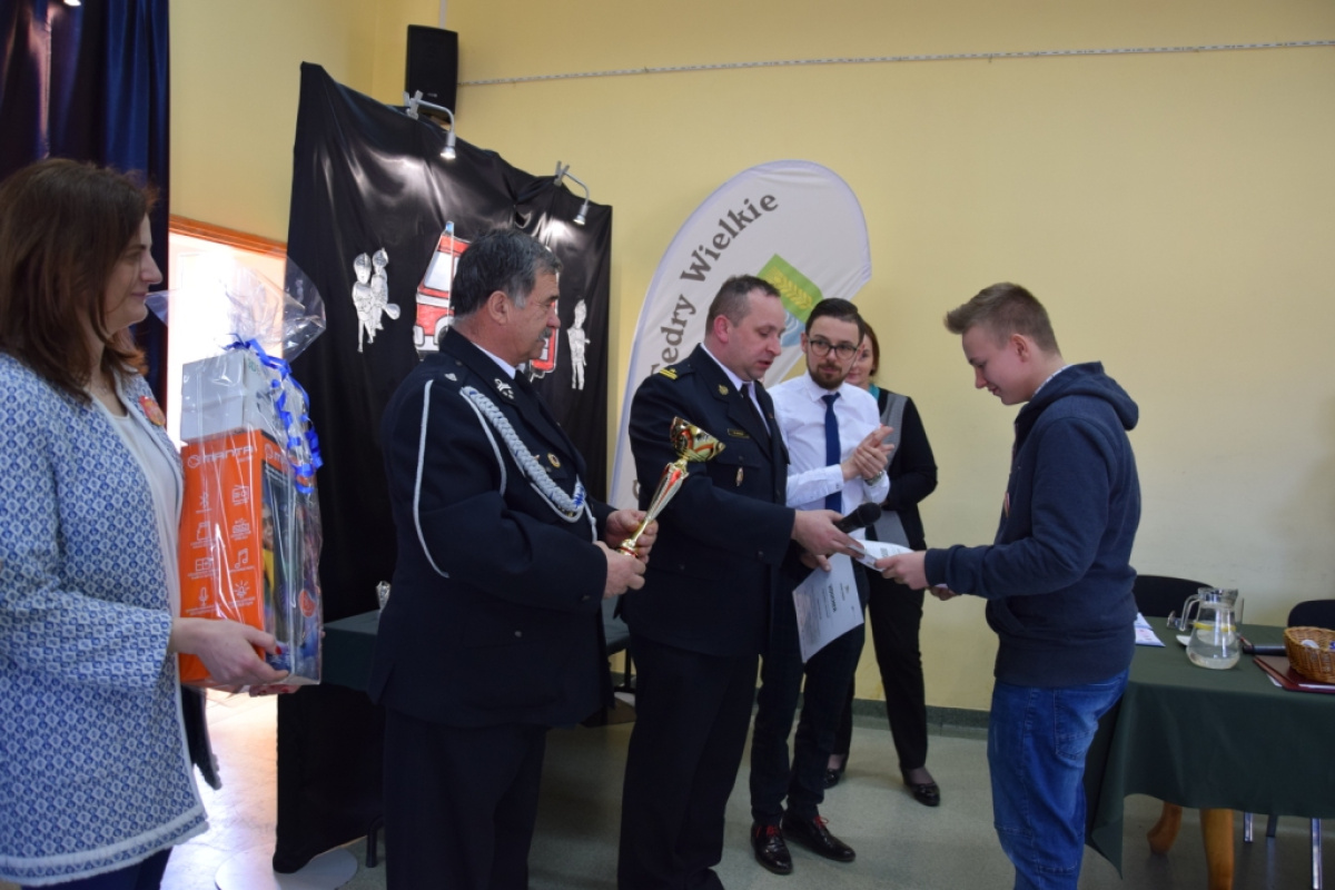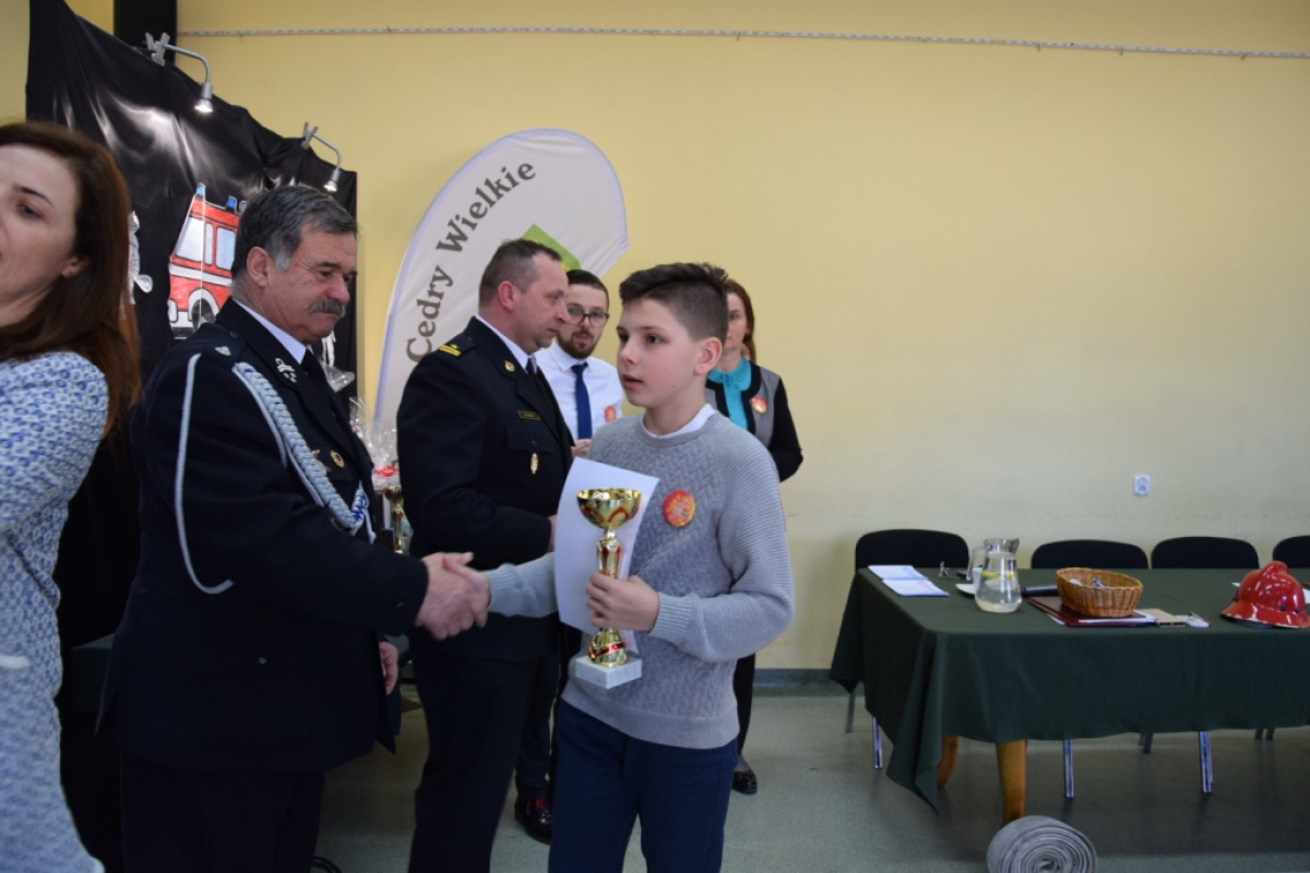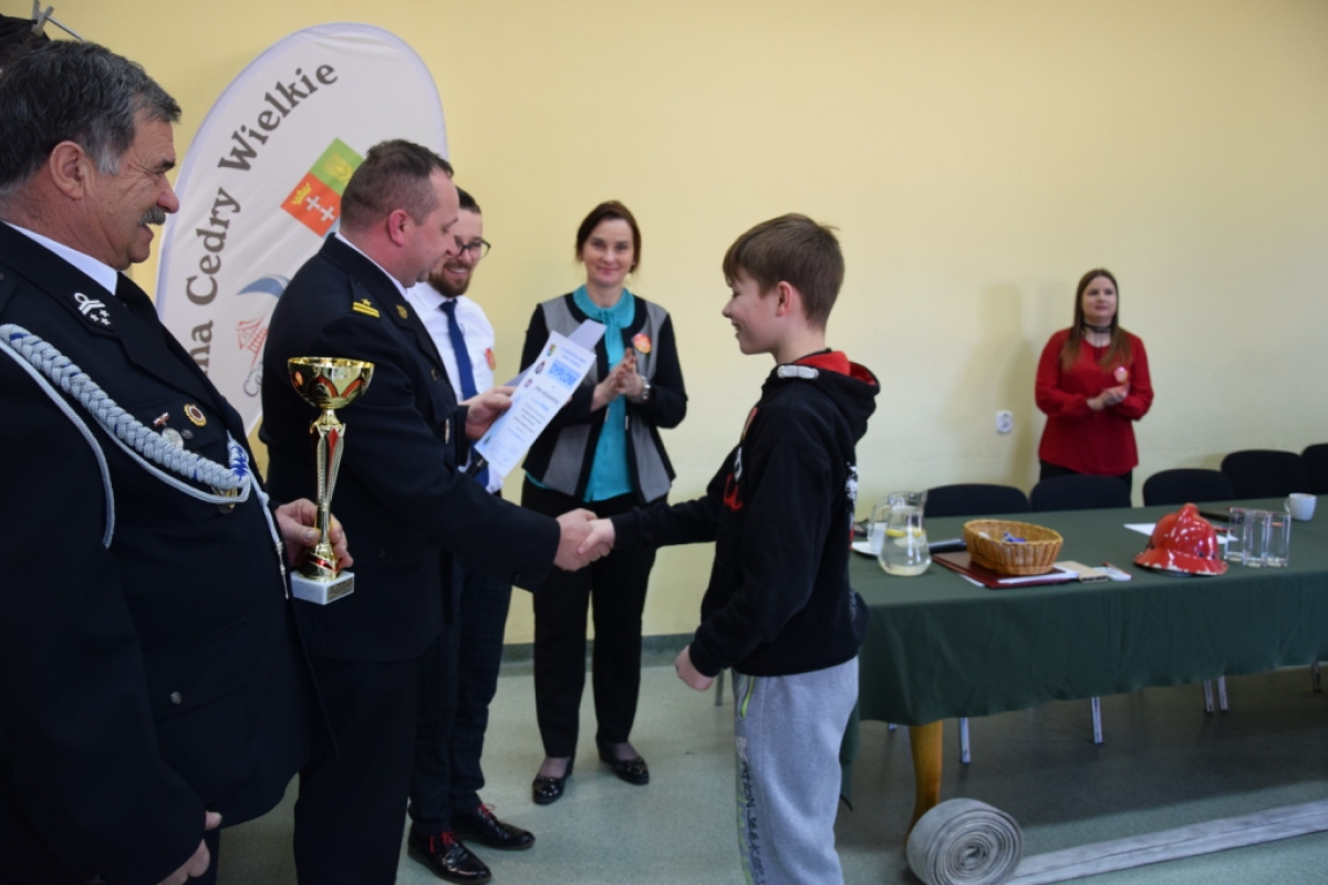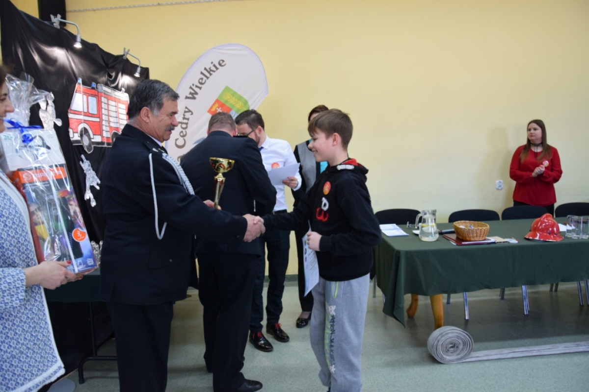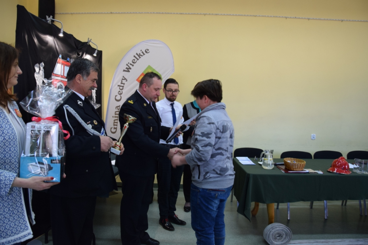 Dnia 21 marca 2018 roku w Żuławskim Ośrodku Kultury i Sportu w Cedrach Wielkich odbyły się gminne eliminacje do XLI Ogólnopolskiego Turnieju Wiedzy Pożarniczej „Młodzież zapobiega pożarom”. Były to już dziewiąte eliminacje organizowane na terenie gminy Cedry Wielkie. W konkursie licznie wzięły udział dzieci i młodzież ze wszystkich szkół: Giemlic, Wocław, Cedrów Małych i Cedrów Wielkich. Na wszystkich uczestników czekały statuetki za udział oraz dyplomy, a dla zwycięzców nagrody rzeczowe i puchary, które zostały ufundowane przez Pana Janusza Golińskiego - Wójta Gminy Cedry Wielkie. Celem konkursu jest popularyzowanie wśród dzieci i młodzieży znajomości przepisów przeciwpożarowych, zasad postępowania na wypadek pożaru, wiedzy na temat technik pożarniczych, organizacji ochrony przeciwpożarowej oraz historii i tradycji samej straży pożarnej.