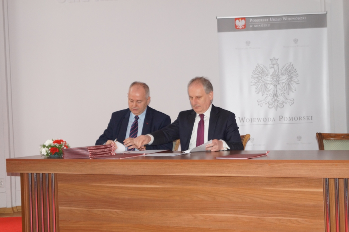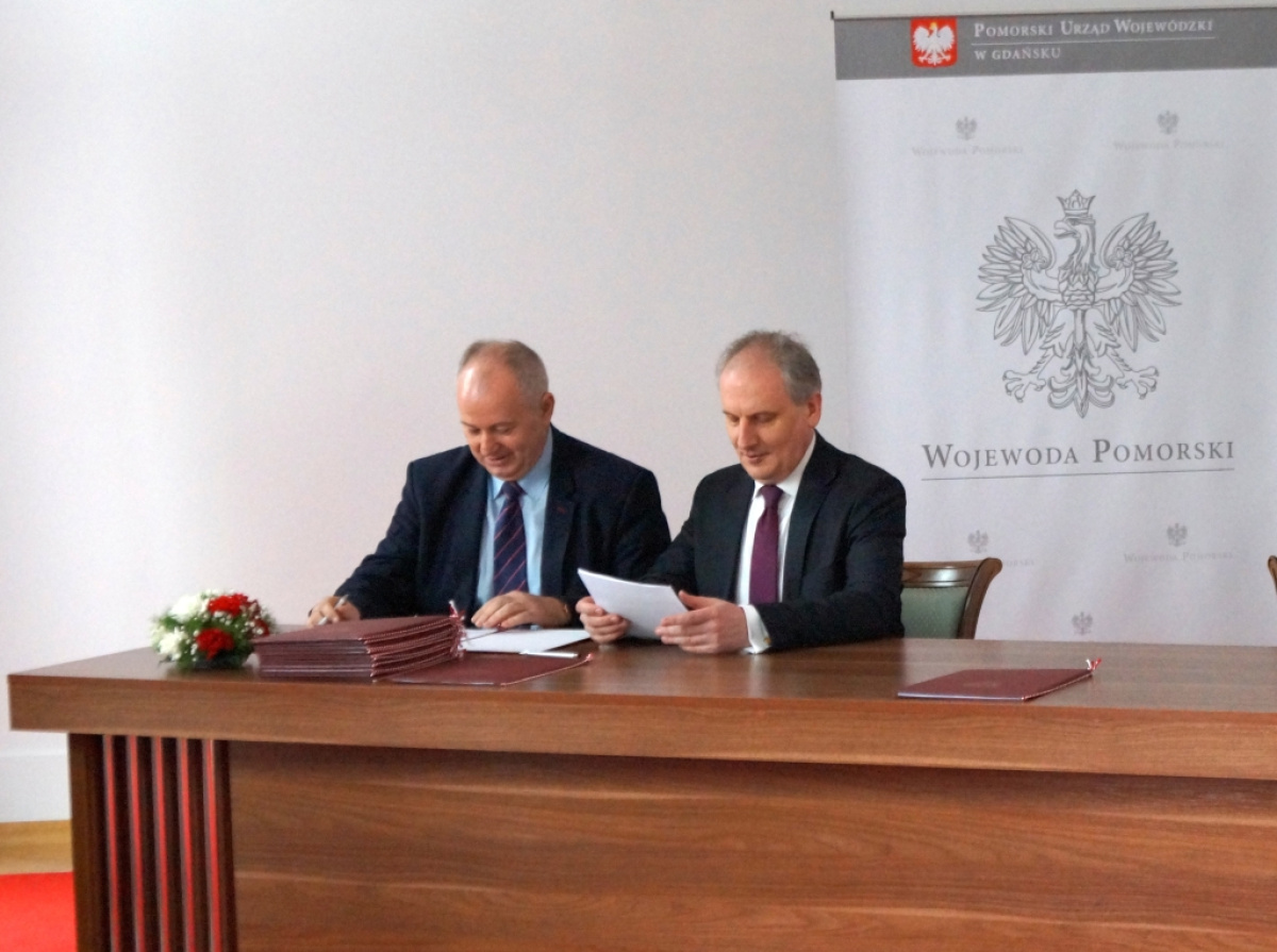W środę 28 marca br. Pan Janusz Goliński Wójt Gminy Cedry Wielkie podpisał z Wojewodą Pomorskim Panem Dariuszem Drelich umowę o dofinansowanie inwestycji pn.: „Budowa drogi gminnej w Cedrach Wielkich, ul. Mickiewicza od DW 227 do działki nr 354/8”. Całkowity koszt przedsięwzięcia wynosi ponad 2,7 mln złotych z czego 1 247 124,00 mln zł stanowi dofinansowanie z „Programu rozwoju gminnej i powiatowej infrastruktury drogowej na lata 2016-2020”. Projekt obejmuje budowę nowego układu z betonu asfaltowego wraz z zjazdami. Wybudowane zostaną również miejsca postojowe, zatoka autobusowa, kanalizacja deszczowa, oświetlenie uliczne oraz ciąg pieszy.