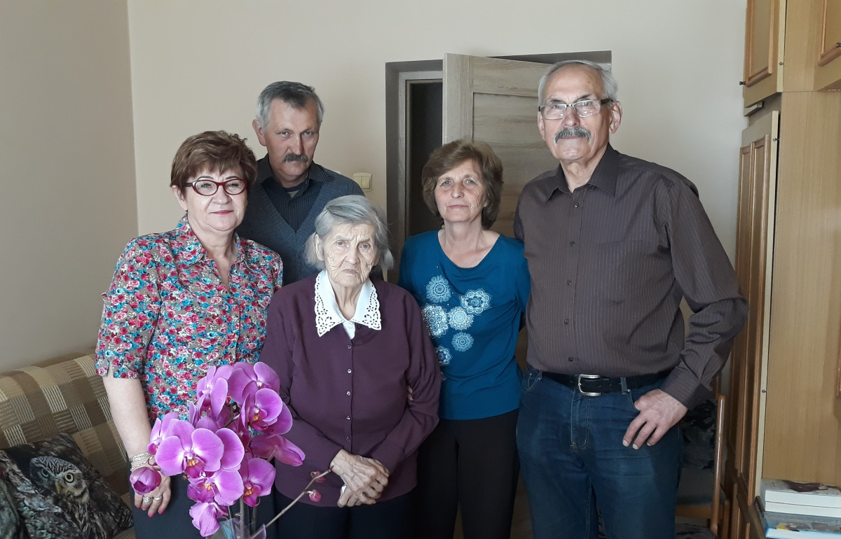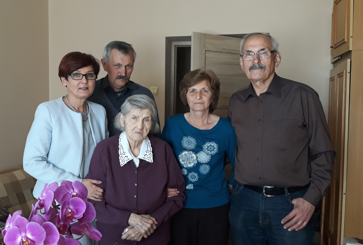Pani Czesława Skórka mieszkanka Koszwał w dniu 21.04.2018 r., obchodziła jubileusz 91 urodzin. Z tej okazji dnia 20.04.2018 r. Pani Elżbieta Prymaczek - Sekretarz Gminy Cedry Wielkie wraz z Panią Grażyną Bereza - Kierownik Gminnego Ośrodka Pomocy Społecznej, udały się z życzeniami oraz bukietem kwiatów do jubilatki. Uroczyste spotkanie odbyło się w gronie najbliższych.