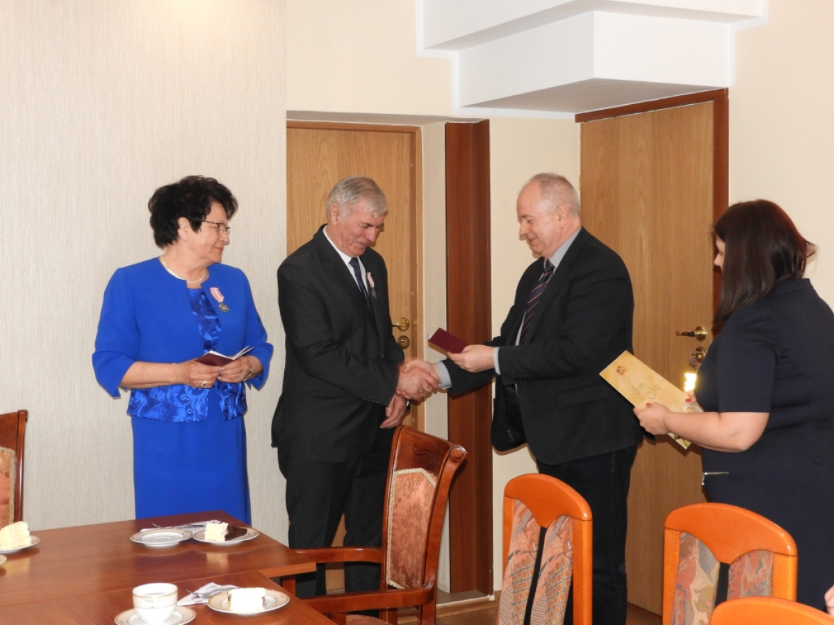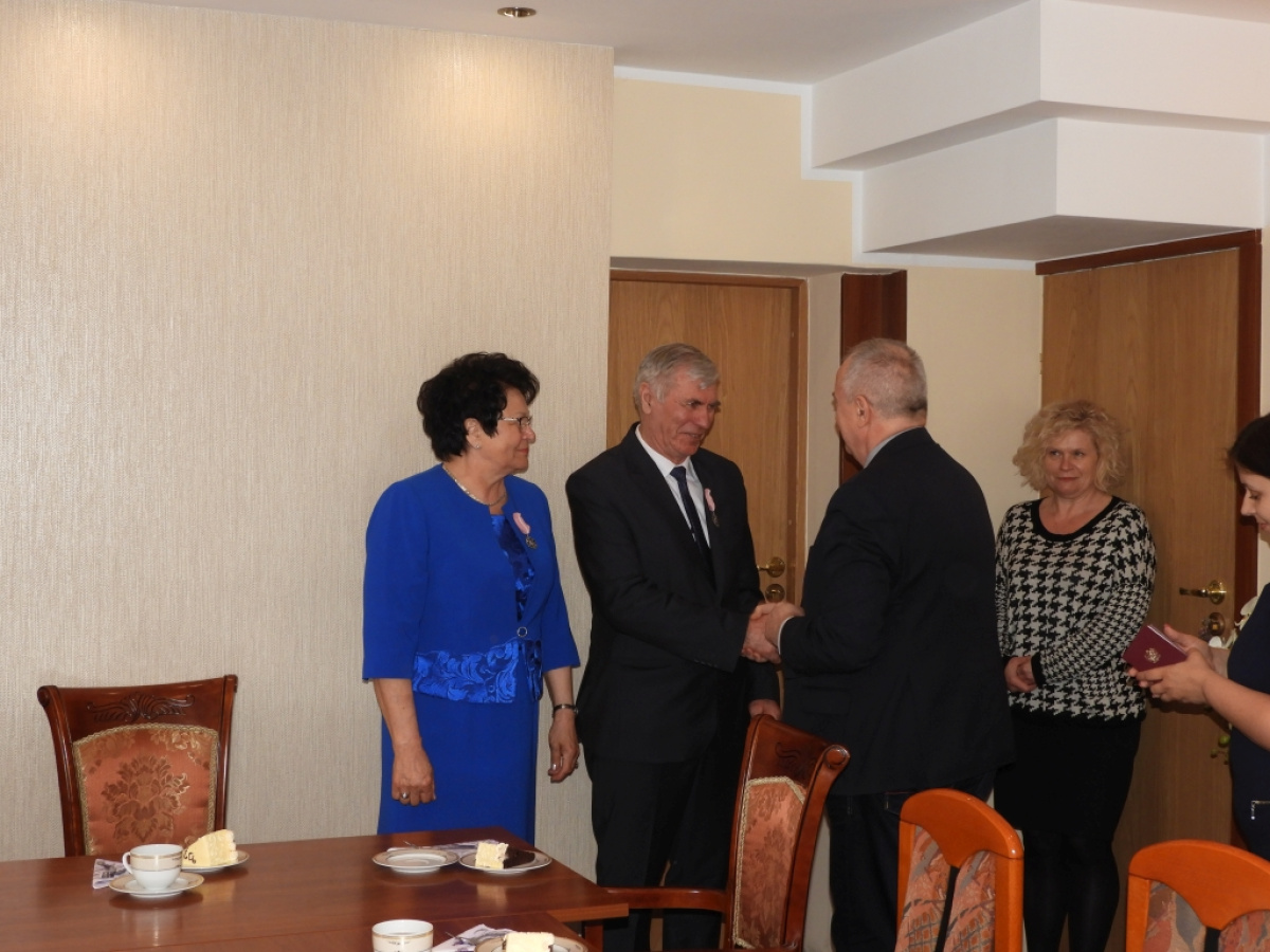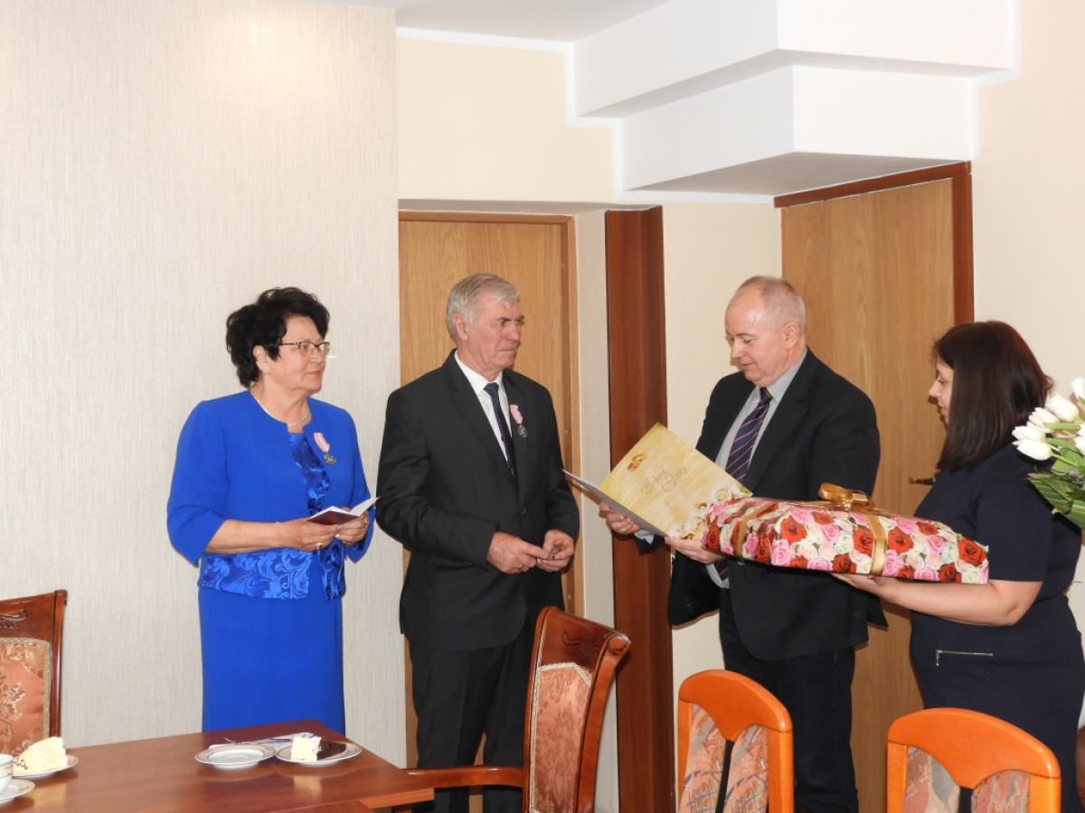 Dnia 23 kwietnia 2018 r. w Urzędzie Stanu Cywilnego w Cedrach Wielkich Państwo Maria i Edward Bojarowscy z Cedrów Małych obchodzili szczególny jubileusz - Złote Gody, czyli 50 lat wspólnego pożycia małżeńskiego. Szanowni Jubilaci, w obecności najbliższych członków rodziny, zostali odznaczeni "Medalami za Długoletnie Pożycie Małżeńskie”. W imieniu Prezydenta Rzeczypospolitej Polskiej, złotą parę uhonorował Wójt Gminy Janusz Goliński przekazując dostojnym Jubilatom szczególne wyrazy uznania i podziękowania za to, że wieloletnim, wspólnym życiem, wzajemnym poszanowaniem dają świadectwo, iż rodzina to najważniejsza wartość w życiu człowieka.