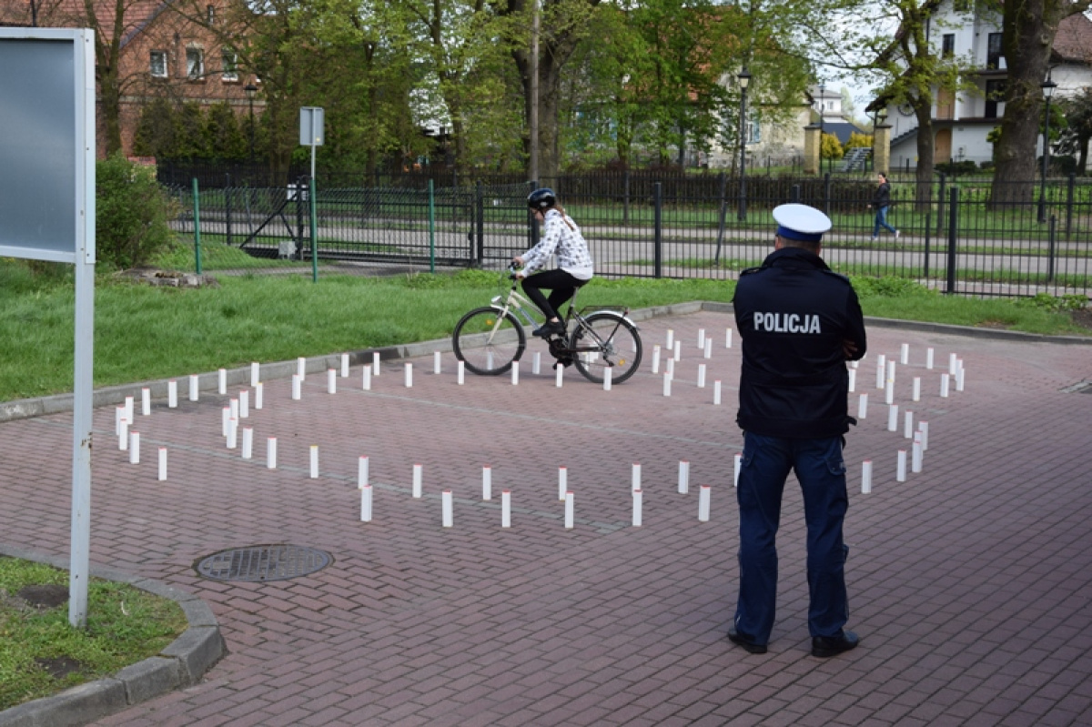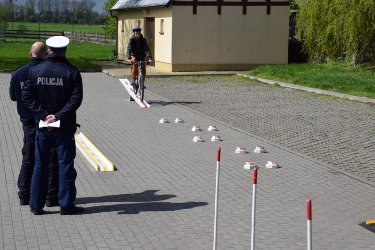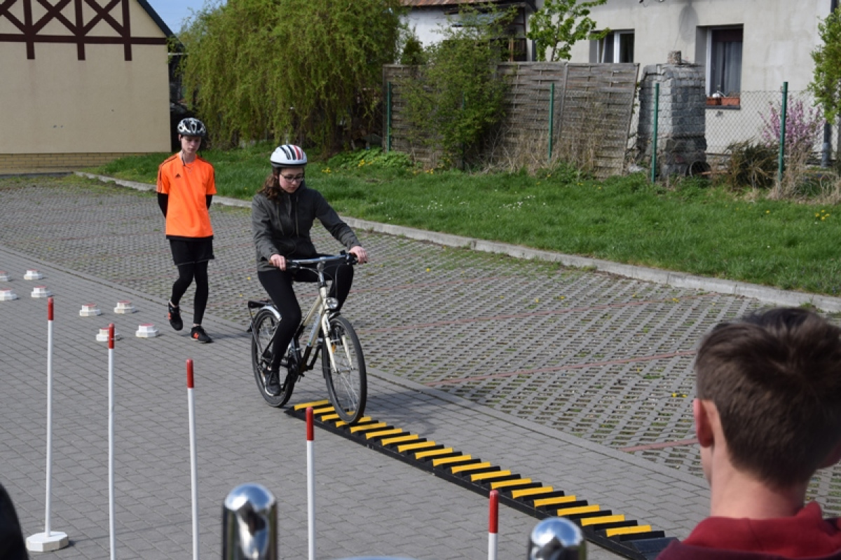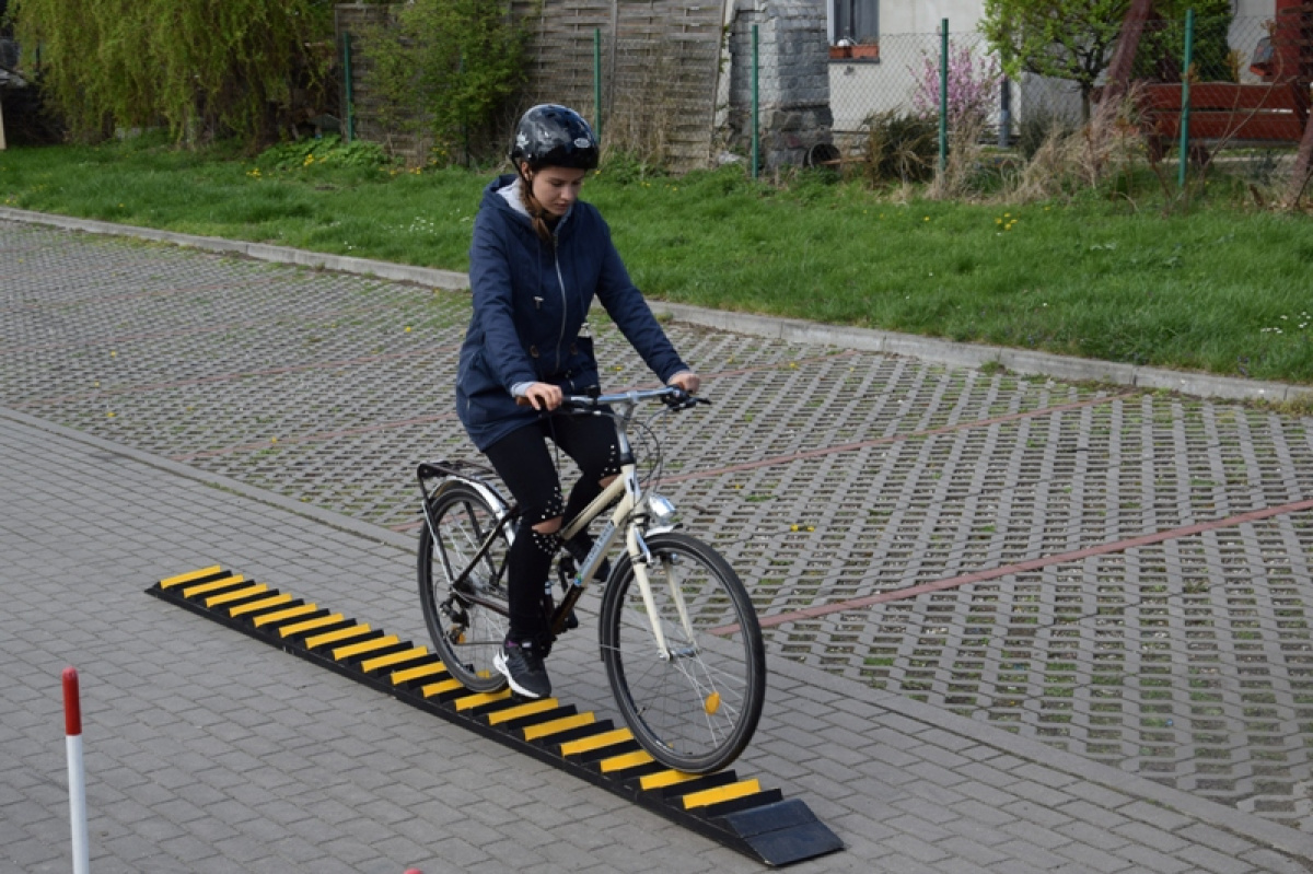 - Część praktyczna - w trakcie której należało pokonać rowerowy tor przeszkód, składający się z 9 elementów tj.: najtrudniejszej przeszkody - ósemki, slalomu z ograniczeniem, rynny, korytarza z desek, pochylni, równoważni, slalomu kółkowego „żmijki”, tarki i zatrzymania w miejscu.