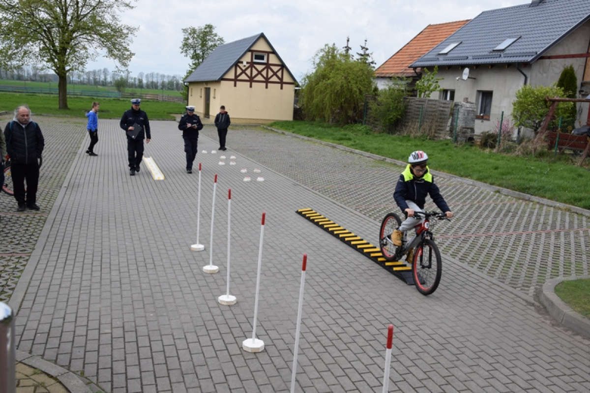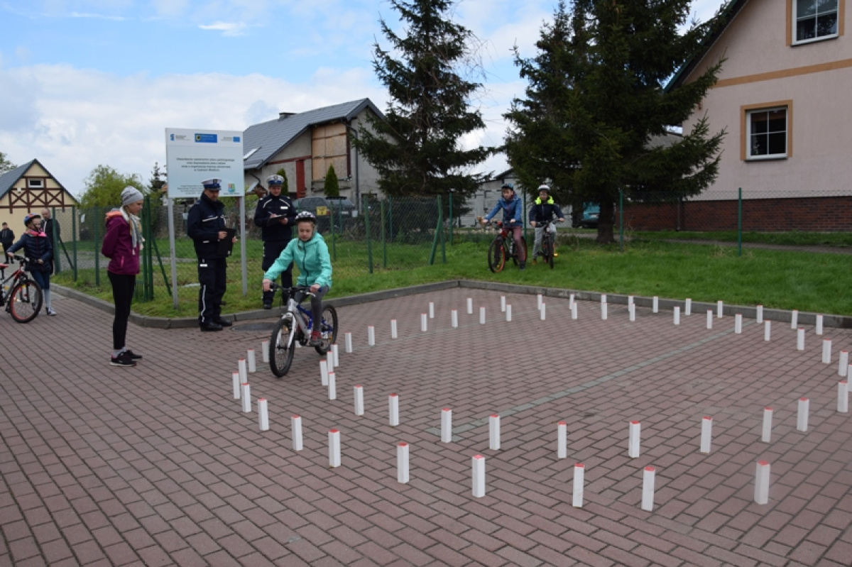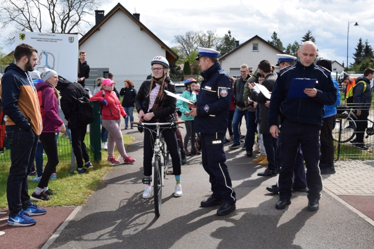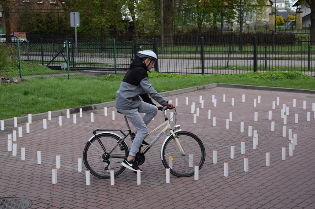 - Część praktyczna - w trakcie której należało pokonać rowerowy tor przeszkód, składający się z 9 elementów tj.: najtrudniejszej przeszkody - ósemki, slalomu z ograniczeniem, rynny, korytarza z desek, pochylni, równoważni, slalomu kółkowego „żmijki”, tarki i zatrzymania w miejscu.