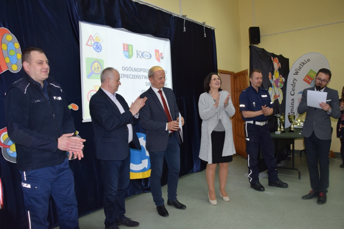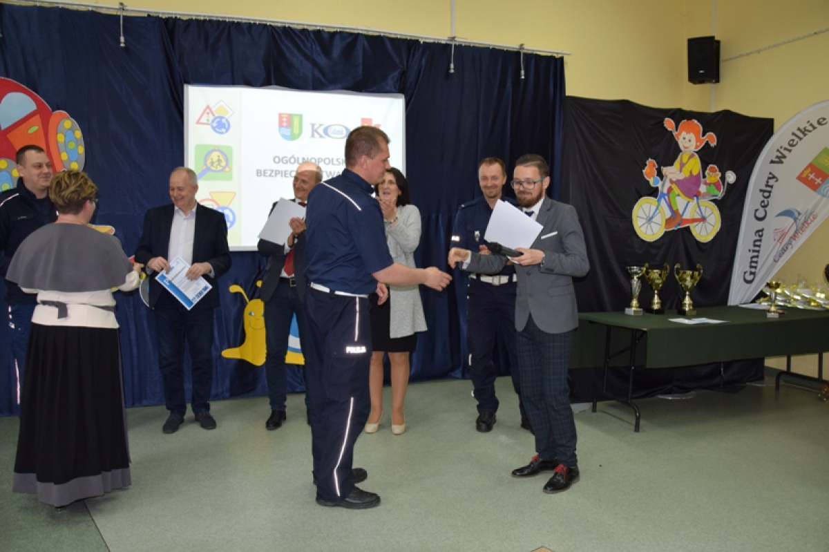 Nad prawidłowym przebiegiem eliminacji czuwali: Policjanci z Wydziału Ruchu Drogowego Komendy Powiatowej Policji w Pruszczu Gdańskim, sierżant - Karol Kościuk , starszy sierżant - Jakub Radziwilski, sierżant sztabowy - Emil Kreft, aspirant - Rafał Waśko. Opiekę medyczną sprawował ratownik medyczny z firmy Sparta Medica - Bartosz Kubczyk. Ponadto swoją obecnością zaszczycili nas: Naczelnik Wydziału Bezpieczeństwa i Zarządzania Kryzysowego - Ireneusz Czarnecki, przedstawicielka Kuratorium Oświaty w Gdańsku - Joanna Galińska, Wójt Gminy Cedry Wielkie - Janusz Goliński, Przewodnicząca Rady Gminy Cedry Wielkie - Bożena Daszewska, Kierownik Referatu Oświaty, Kultury i Sportu Urzędu Gminy w Cedrach Wielkich - Maria Gierszewska oraz dyrektorzy, nauczyciele i wychowawcy ze szkół z terenu powiatu.