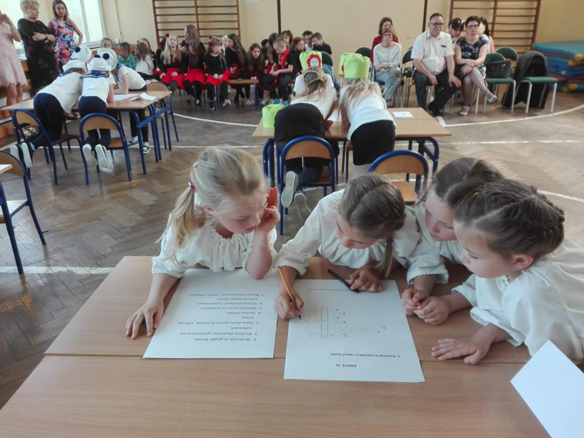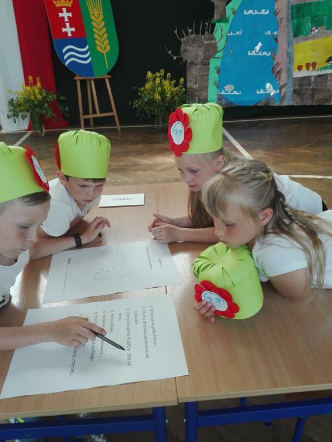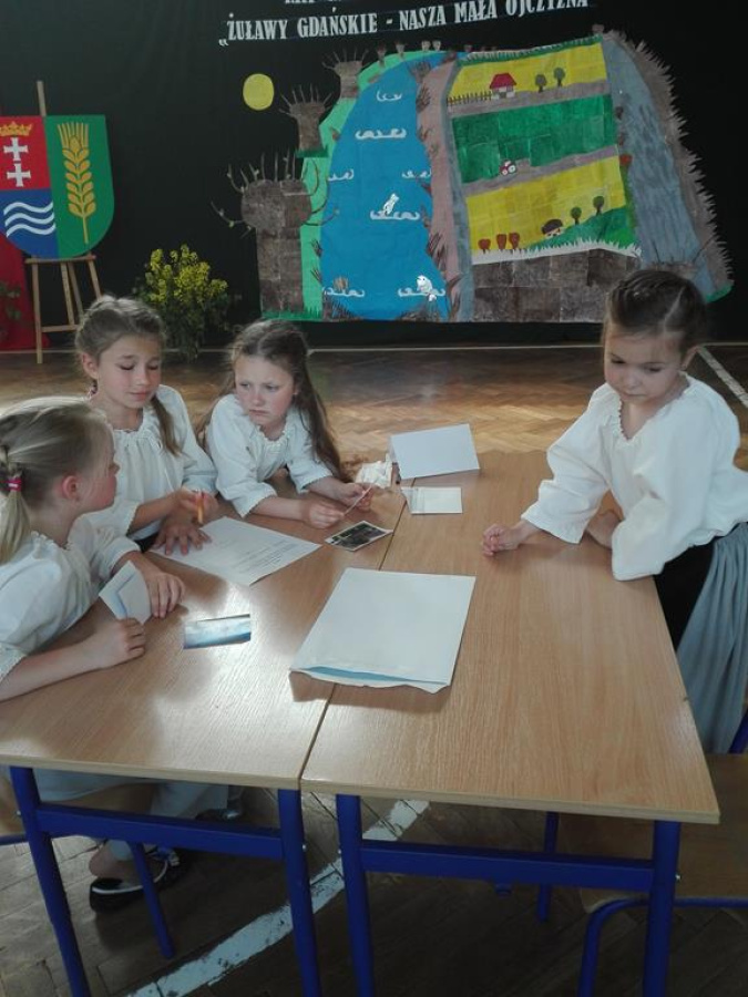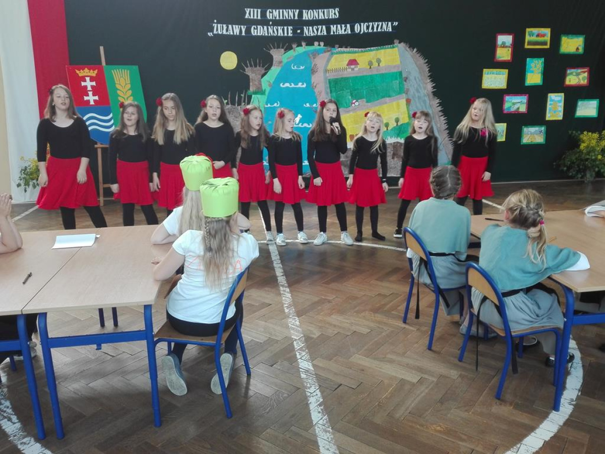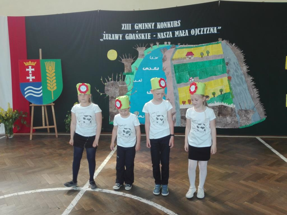 Każda grupa prezentowała się wyśmienicie. W dalszej części uczniowie pisali test wiedzy o naszym regionie. Uczestnicy wykazali się dużym zakresem wiadomości, między innymi na temat domów podcieniowych i zagród holenderskich, a także symboliki herbu naszej Gminy. Uczestnicy doskonale poradzili sobie również z rozpoznawaniem zabytków Gminy Cedry Wielkie oraz roślin uprawnych charakterystycznych dla Żuław. Ostatnim zadaniem konkursu było wykonanie pracy plastycznej pt. „Zagroda holenderska”. Technika wykonania pracy była dowolna, więc drużyny miały naprawdę duże pole do popisu. Prace konkursowe można nadal podziwiać w holu w naszej szkole.