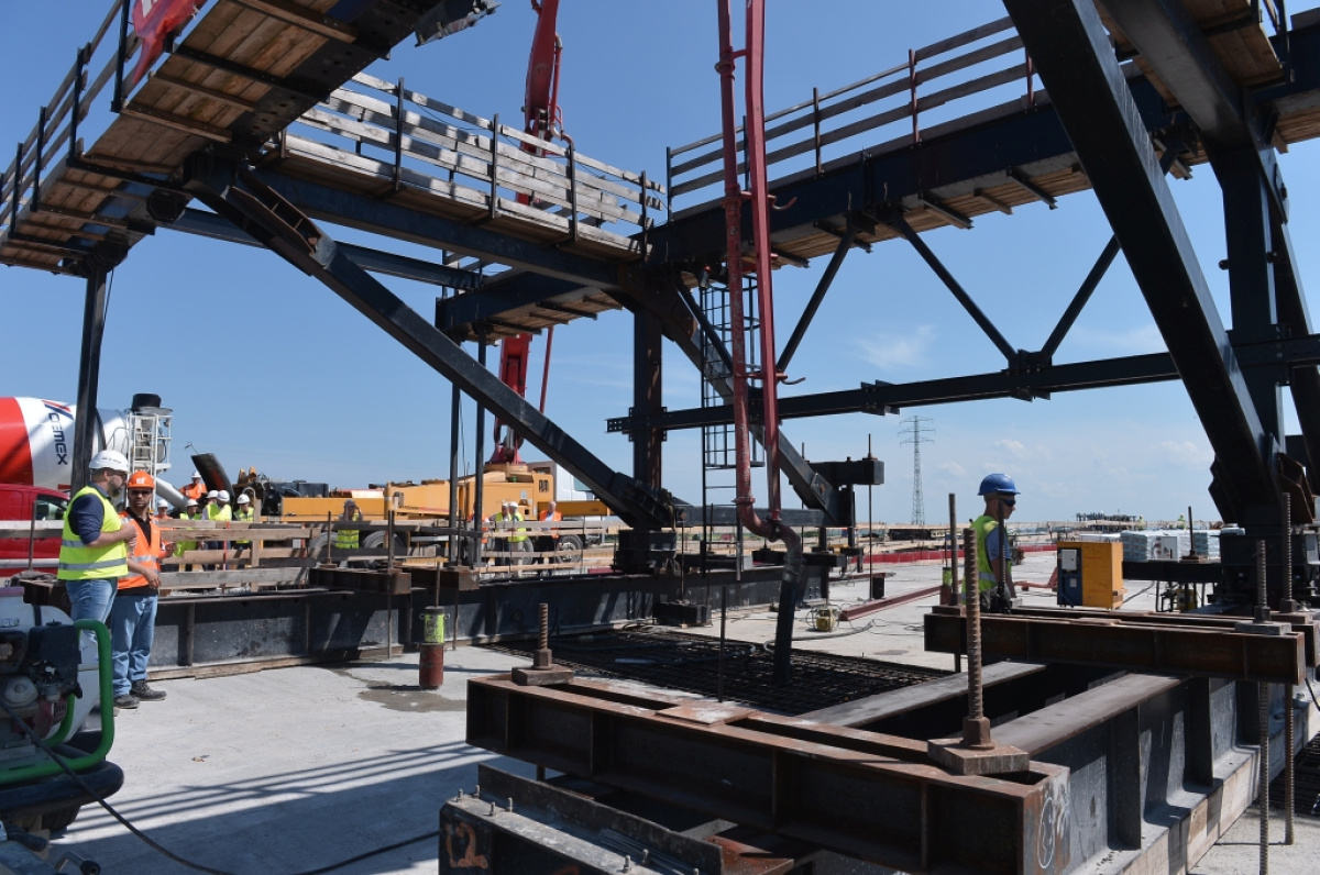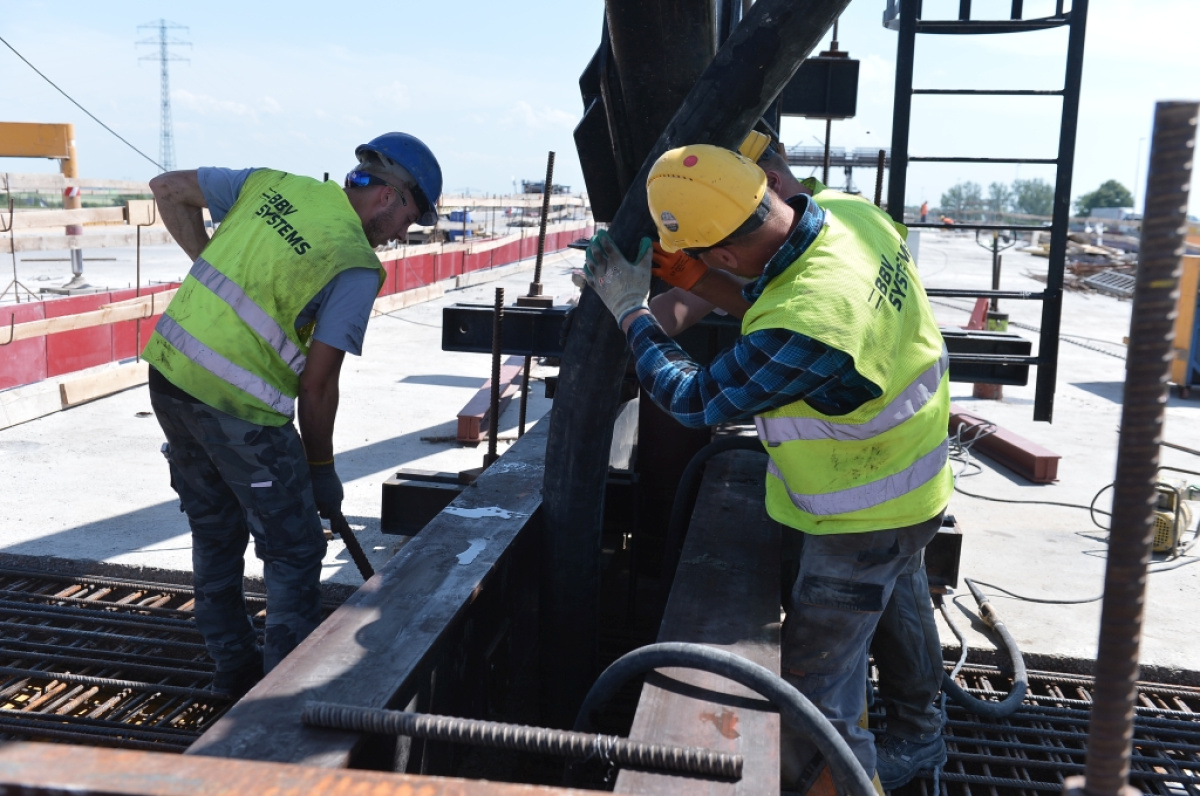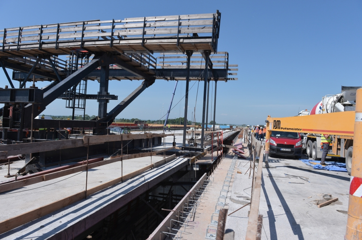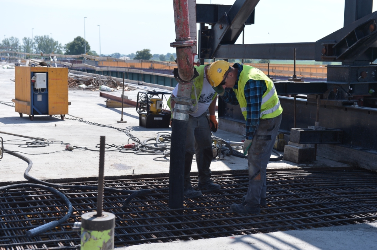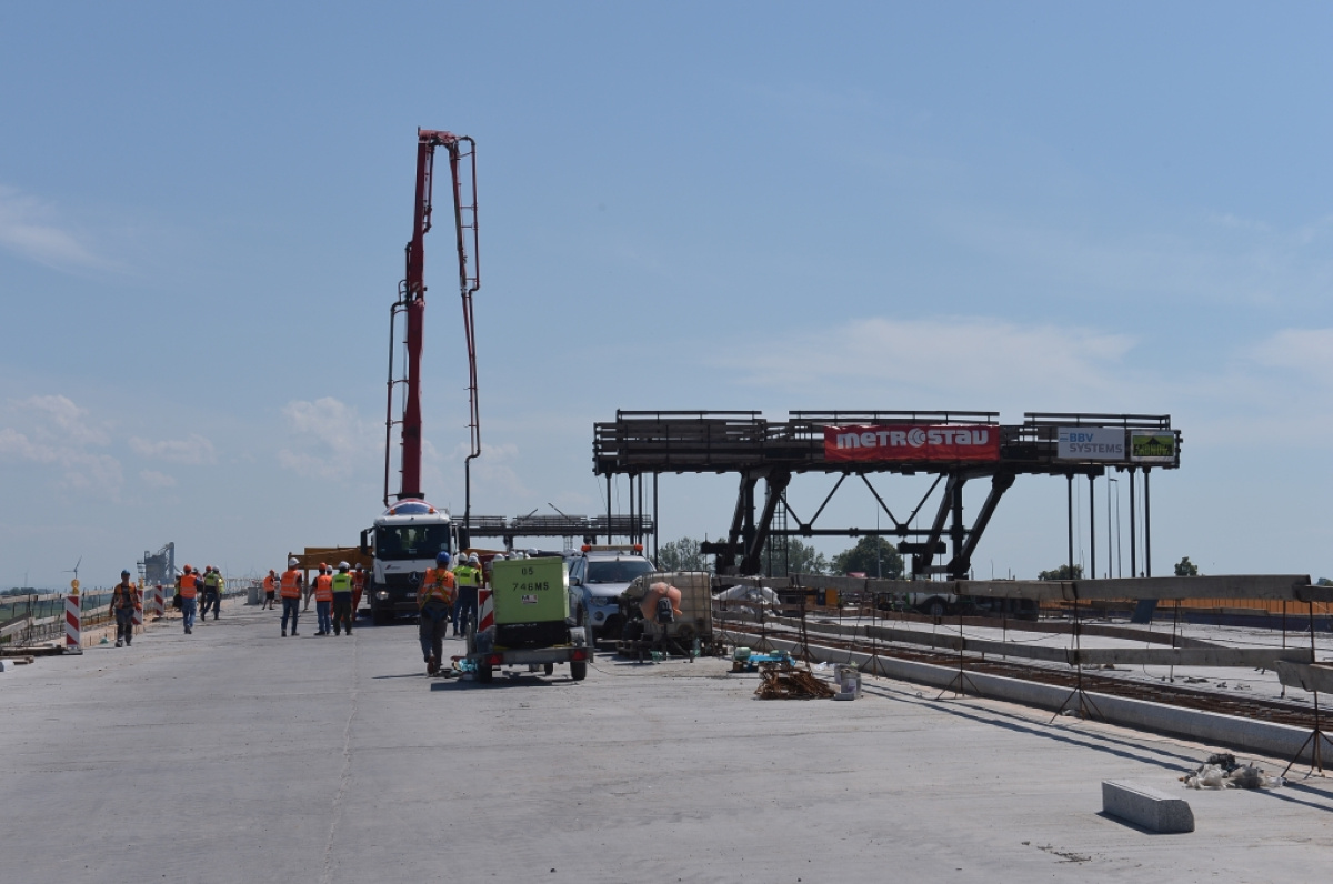 Cała konstrukcja przeprawy to właściwie dwa osobne mosty, po których przebiegać będą poszczególne części trasy S7 (obie "nitki") dzieli szczelina o szerokości około 2 metrów. Betonowanie linii północnej już się zakończyło, uroczyście zakończono "wiązanie" obu części mostu południowego - Konstrukcja mostu była budowana niemal równocześnie po obu stronach rzeki Wisły - mówi Mariusz Jańczewski, kierownik projektu z ramienia firmy Metrostav, wykonującej prace na tym odcinku S7. Obie części "spotkały się" mniej więcej w połowie. Zabetonowaliśmy ostatni fragment między przęsłami, "wiążąc" całą konstrukcję. Od jutra rozpoczną się prace wykończeniowe. Wylewanie nawierzchni zaplanowane jest na wrzesień.