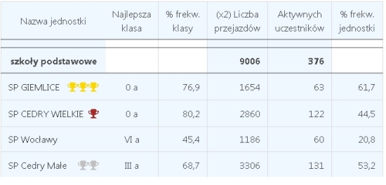 30 maja zakończyła się Kampania Rowerowy Maj, w której czynny udział wzięli uczniowie ze wszystkich szkół z terenu naszej gminy – Cedrów Wielkich, Cedrów Małych, Giemlic i Wocław. Akcja cieszyła się niesamowitą popularnością, co było widać po ilości zaparkowanych pod szkołami rowerów i hulajnóg. Łączna liczba uczestników tegorocznej akcji to aż 376 uczniów oraz 19 pracowników. 100% aktywnych przejazdów do szkoły przypadło 56 uczestnikom kampanii.