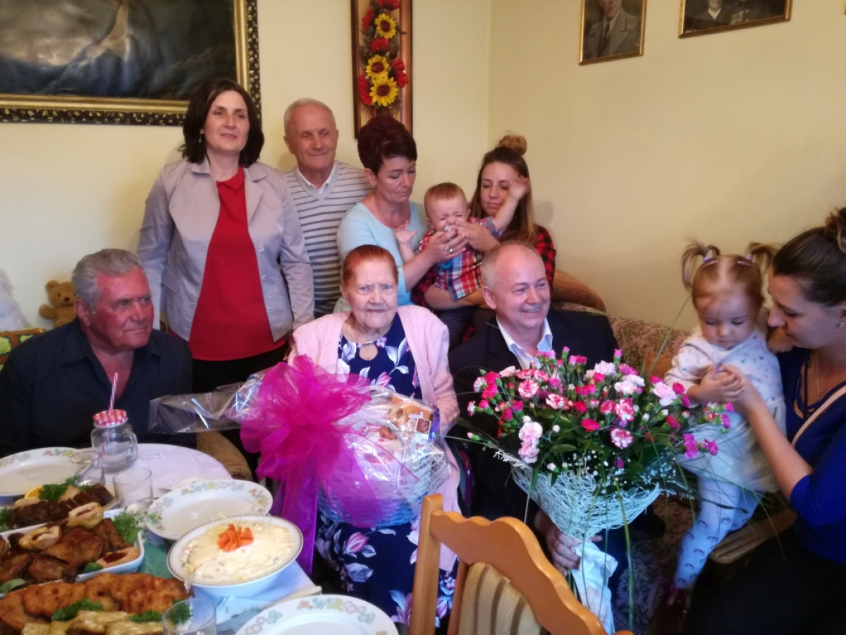 W dniu 06.06.2018 r. Pani Katarzyna Glier najstarsza mieszkanka naszej Gminy obchodziła 106 rocznicę urodzin. Z tej okazji Wójt Gminy Pan Janusz Goliński wraz z Przewodniczącą Rady Gminy Panią Bożeną Daszewską oraz Kierownikiem Gminnego Ośrodka Pomocy Społecznej Panią Grażyną Bereza odwiedzili szanowną Jubilatkę. Delegacja wręczając bukiet kwiatów wraz z upominkiem życzyła szanownej Jubilatce dobrego zdrowia, pogody ducha na kolejne lata przeżywane w życzliwości i miłości najbliższych.
