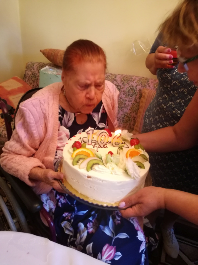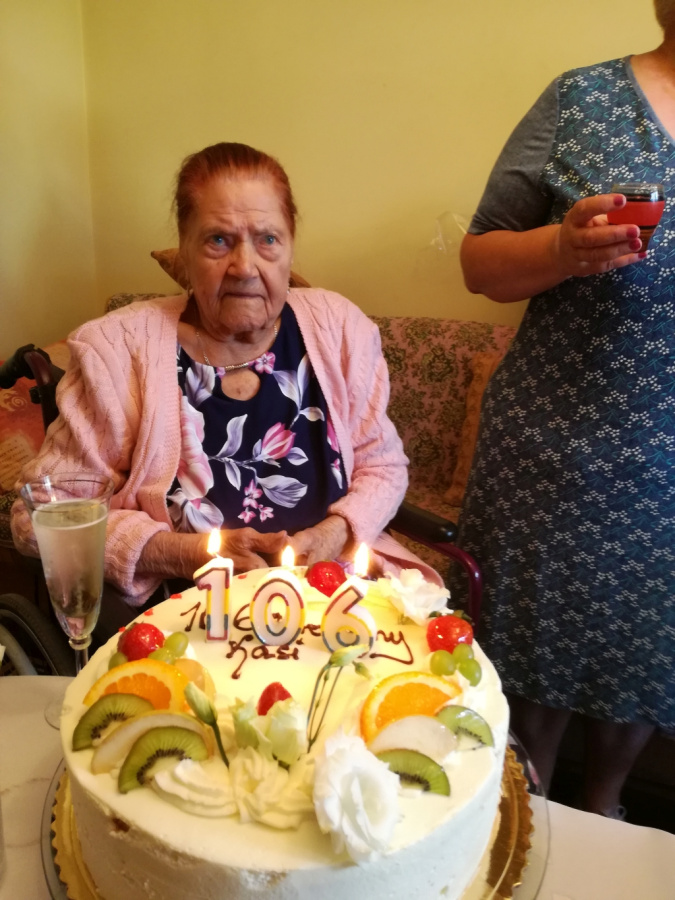 Jak przystało na urodzinowe przyjęcie był pyszny tort oraz toast na zdrowie. Pozostaną miłe wspomnienia i pamiątkowe zdjęcia z sędziwą Jubilatką, której upływający czas dodaje blasku.