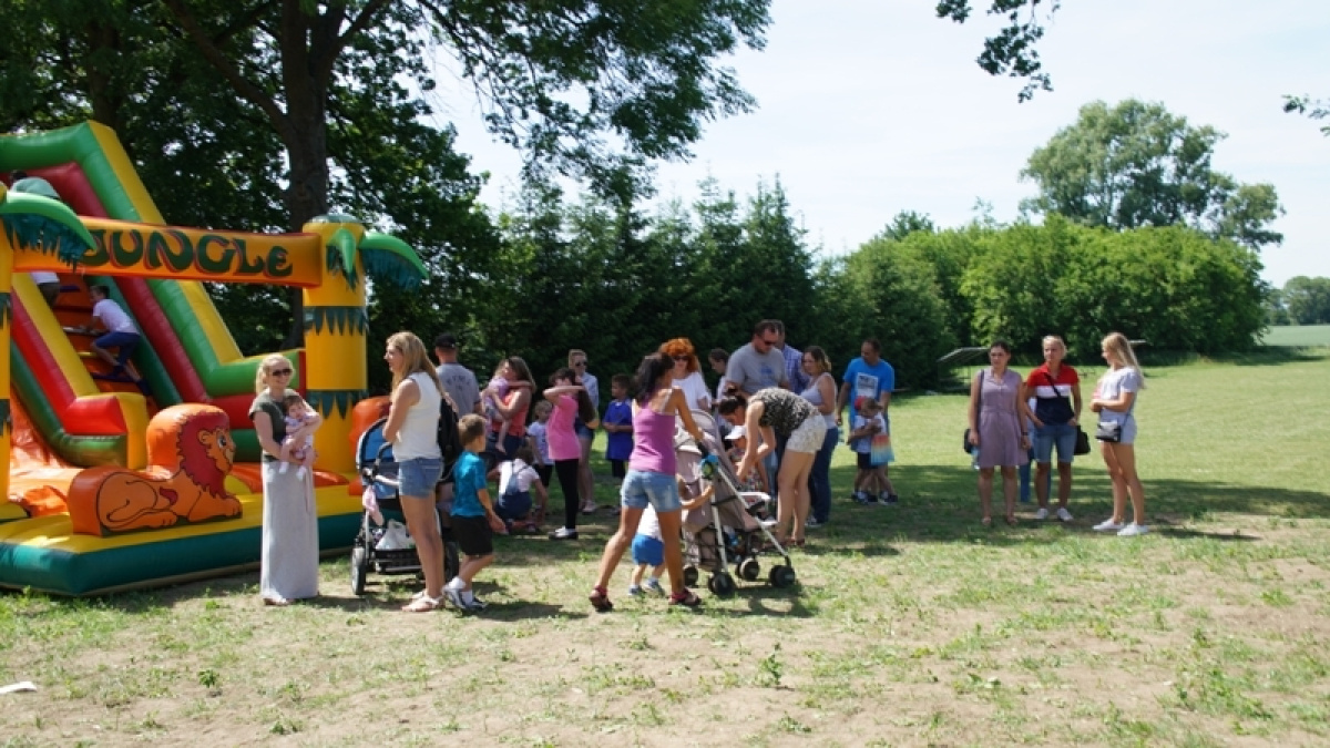 Na gości czekało mnóstwo atrakcji. Ogromnym powodzeniem wśród dzieci cieszyły pokazy Ochotniczej Straży Pożarnej z Koszwał, liczne konkursy. Niecodzienną darmową atrakcją były zamki dmuchane, przejażdżka konna, malowanie twarzy. Oblężenie przeżyły również stoiska z nagrodami. Tradycyjnie rozegrano mecz piłki nożnej. Na scenie odbyły się pokazy talentów dzieci: wokalne, recytatorskie i taneczne. Prowadzone były także zabawy ruchowe, pokaz motorów.