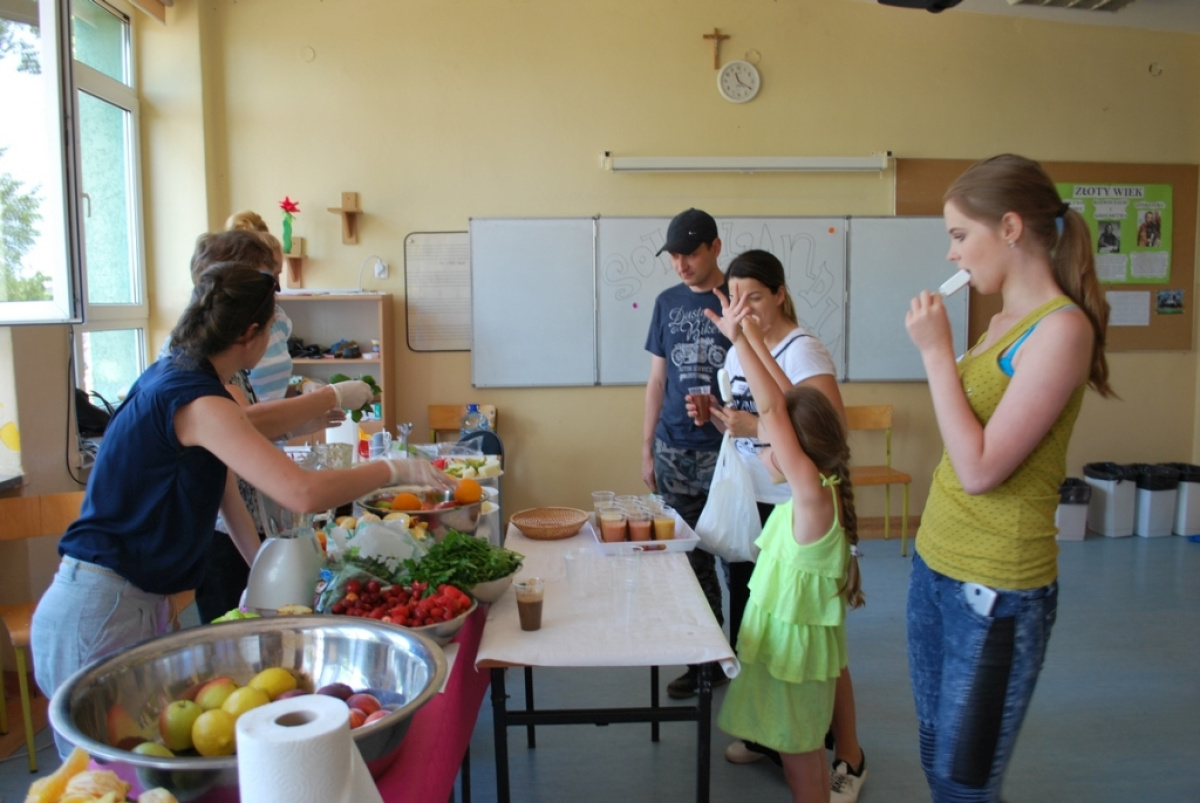 Po ogromnym wysiłku fizycznym, dla ochłody, podano dla wszystkich zimne lody ufundowane przez p. Annę Moritz - miejscową radną. Dużym zainteresowaniem cieszyły się świeżo wyciskane soki na stoisku „Sokolandia”. W trakcie imprezy można było zakupić los loterii fantowej i wygrać atrakcyjne nagrody. Rozstrzygnięto także konkursy plastyczne: dla klas 1-3 szkoły podstawowej „Moja rodzina w podróży” oraz klas 4-7 szkoły podstawowej i I i II gimnazjum „Rodzina na znaczku pocztowym”. Zebrani goście mogli obejrzeć pokaz straży pożarnej oraz wyposażenie wozu strażackiego. Nagrodą główną i wielką atrakcją dla uczestników był rower, który ufundowała Firma Metrostav, budująca drogę ekspresową S-7. Wszyscy mogli skosztować grochówkę i pyszne ciasteczka przygotowane przez rodziców. Rodzice zorganizowali również bufet, gdzie można było zakupić zapiekanki, frytki i świeżo przygotowane desery.