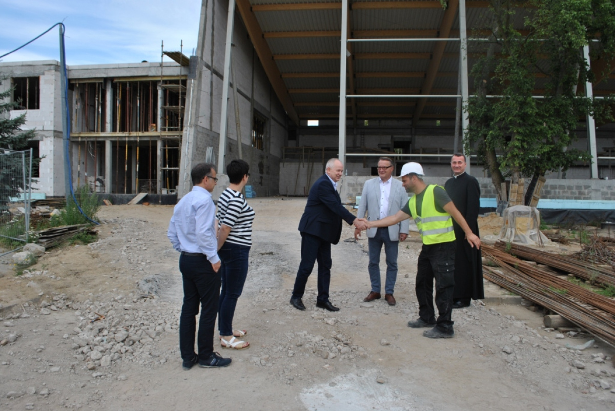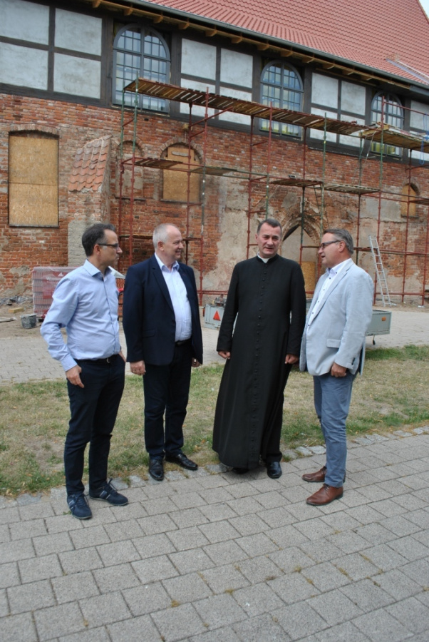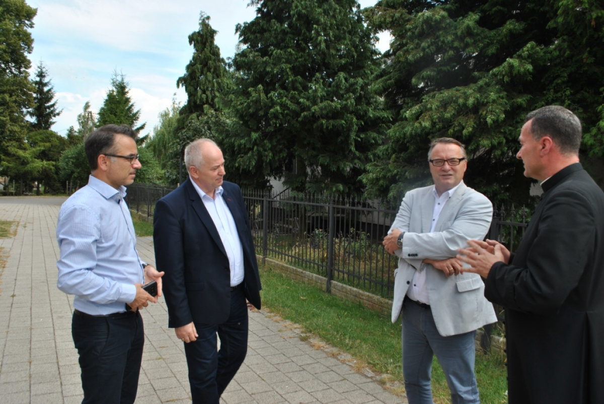 Zaprezentowane postępy wykonywanych prac, a także wdrożone rozwiązania techniczne obiektów zostały przez gości ocenione z uznaniem. W trakcie wizyty uczestniczyli również gospodarze obiektów: Ks. Leszek Laskowski - Proboszcz parafii pw. Św. Aniołów Stróżów w Cedrach Wielkich i Pani Joanna Stępień - Dyrektor Szkoły Podstawowej w Cedrach Wielkich.