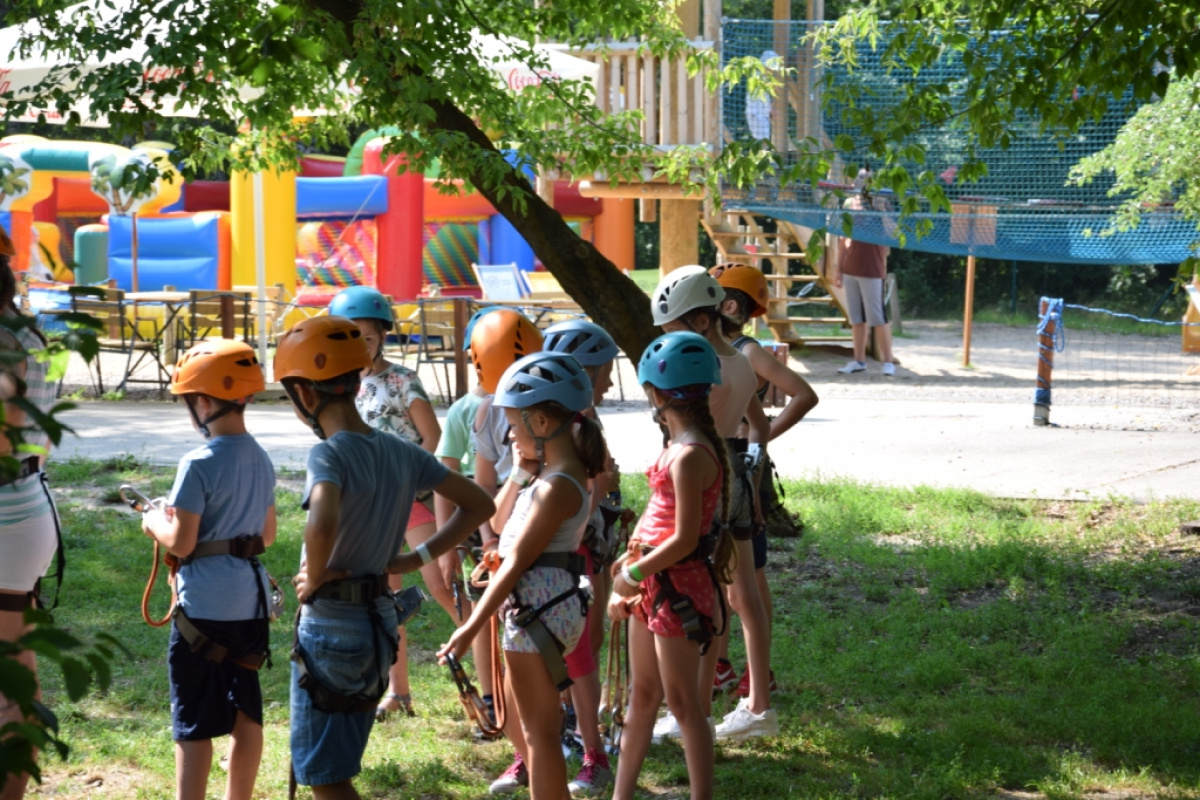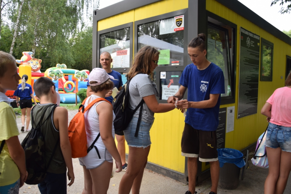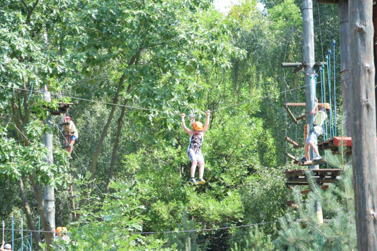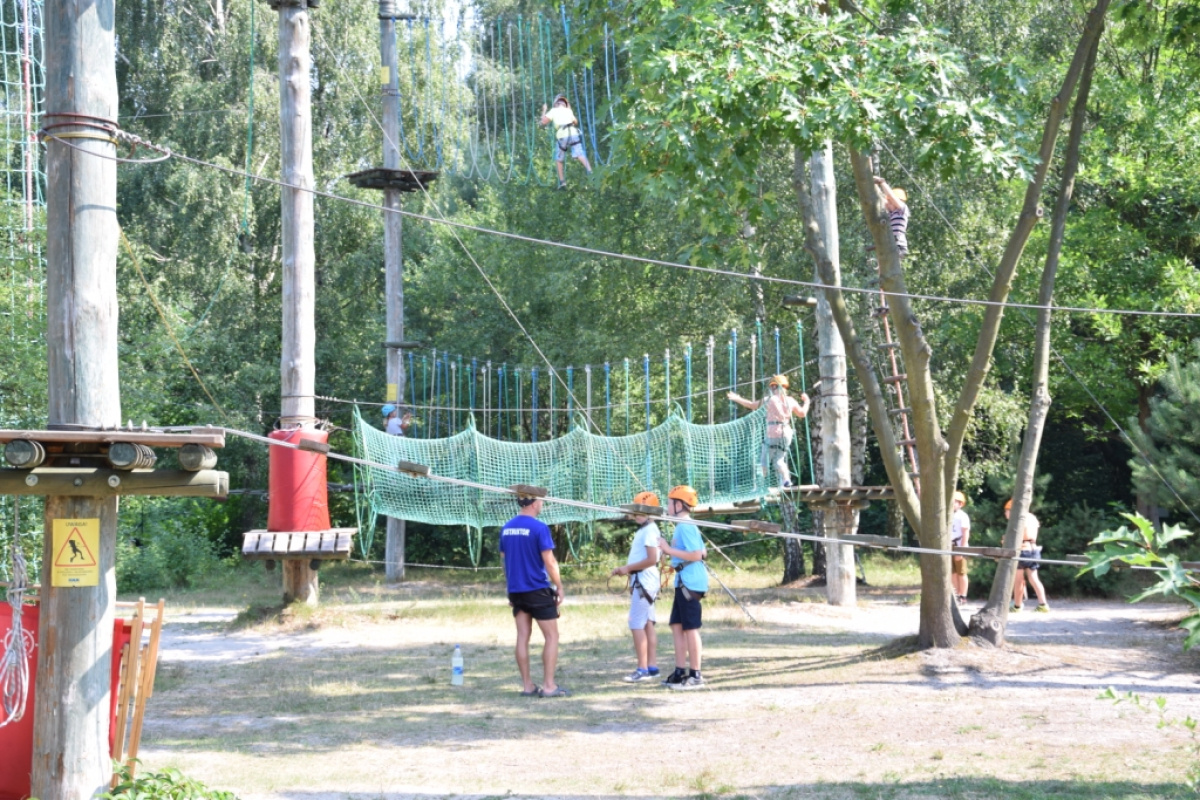 Po dotarciu na miejsce grupa dzieci została ubrana w niezbędny sprzęt alpinistyczny oraz kaski ochronne dzięki, którym mogli bezpiecznie korzystać z atrakcji jakie na nich czekały. Przed wejściem na trasę zieloną, pomarańczową lub czerwoną parku linowego, każdy uczestnik musiał przejść obowiązkowe szkolenie na odcinku treningowym, podczas którego zapoznał się z zasadami posługiwania się sprzętem asekuracyjnym. Dopiero po prawidłowym pokonaniu trasy szkoleniowej zostali dopuszczeni do wejścia na pełne trasy parku linowego.