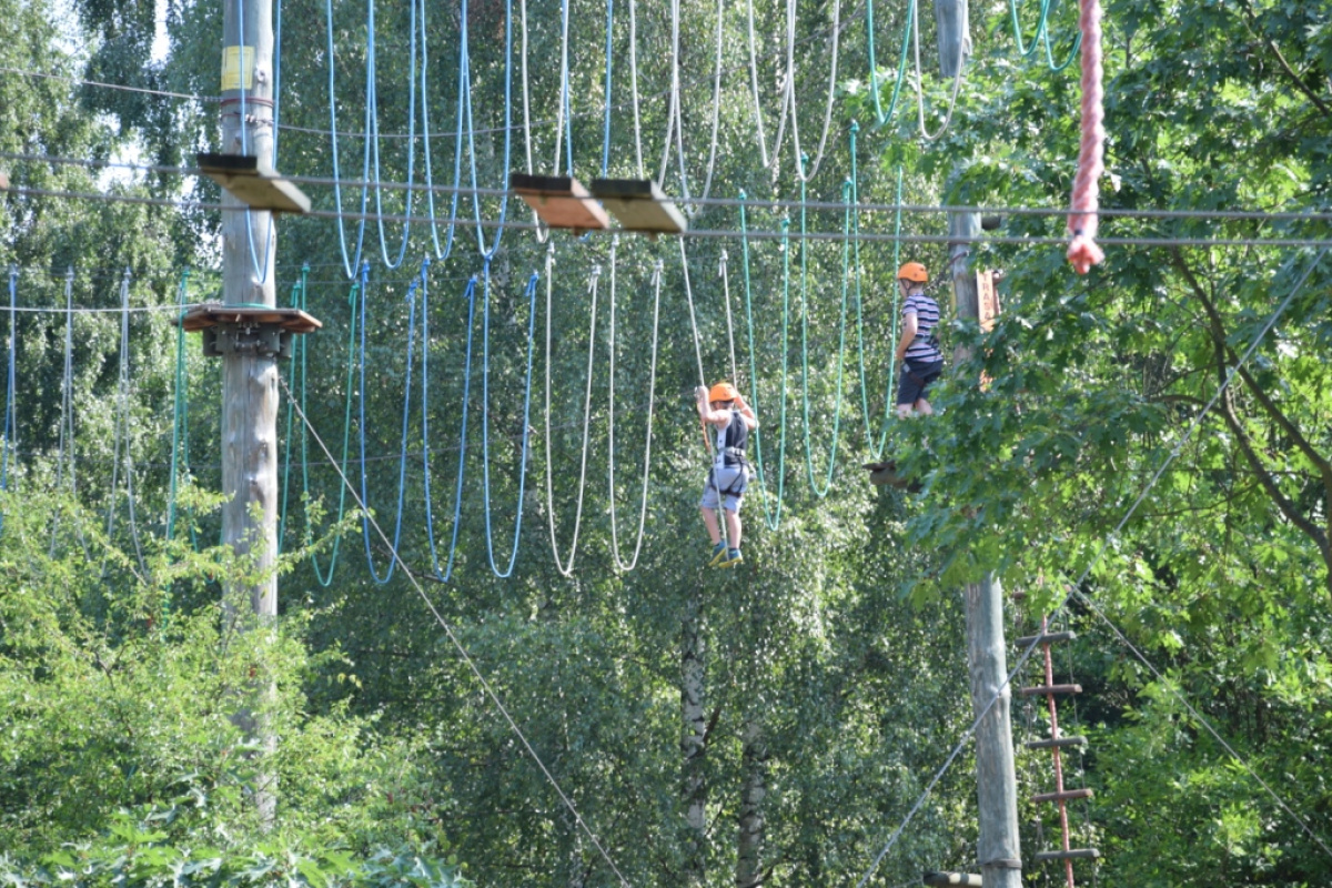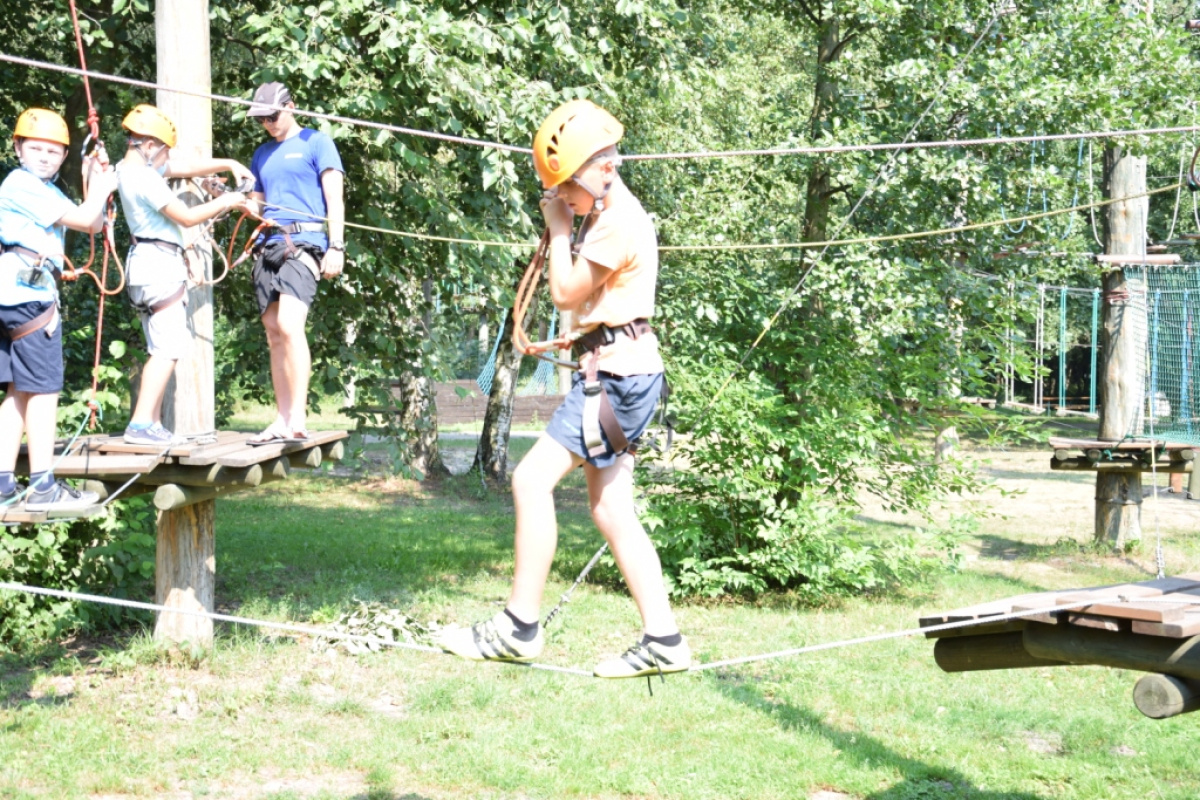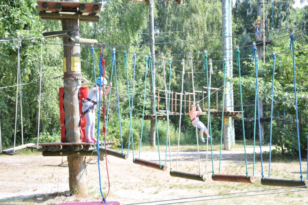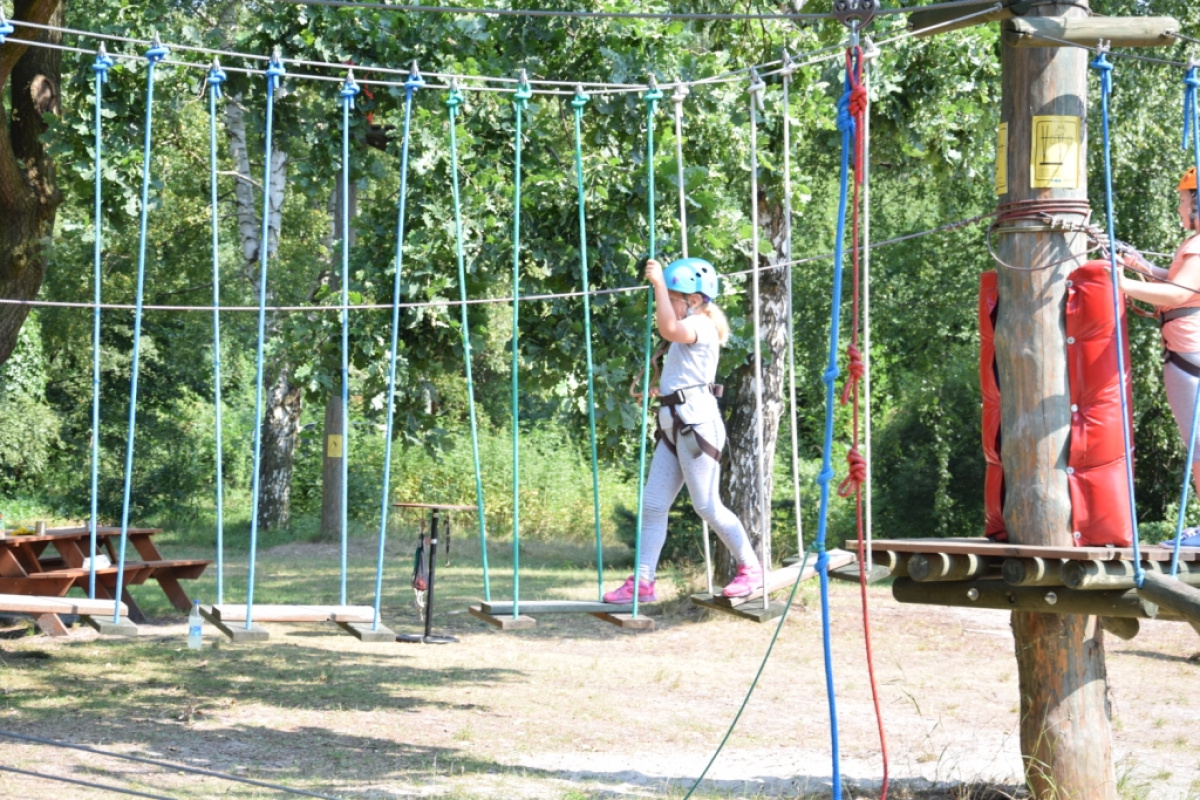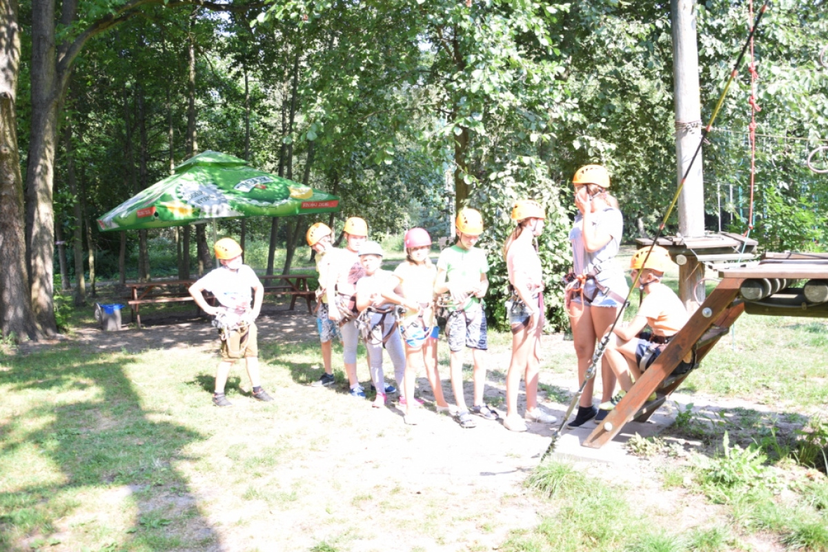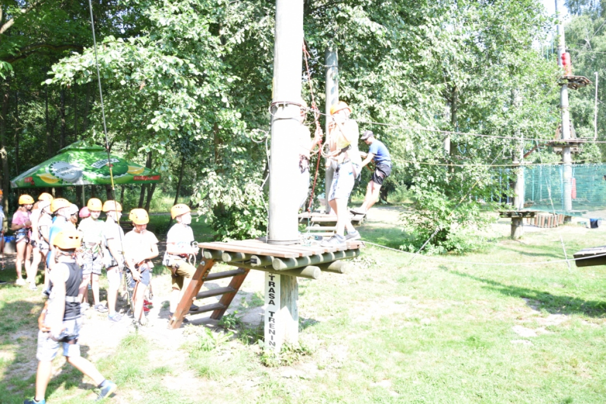 Uczestnicy z ochotą korzystali z różnych torów parku linowego - każdy według swoich możliwości i umiejętności. Przezwyciężali oni swoje słabości przy czym świetnie się bawili. Dzieci bardzo sobie dopingowały, a wspólna walka o skuteczne dotarcie do celu, powodowała niezwykłe emocje ale również przekładała się na integrację grupy.