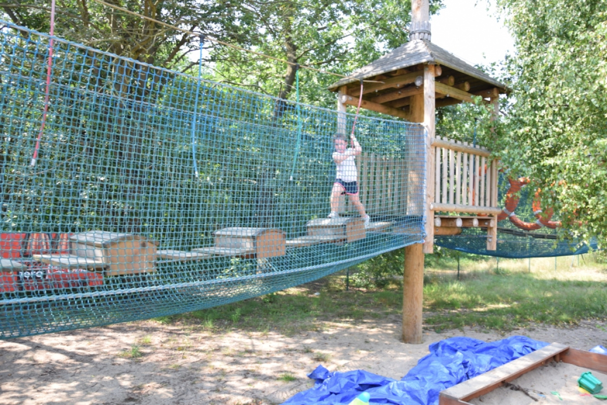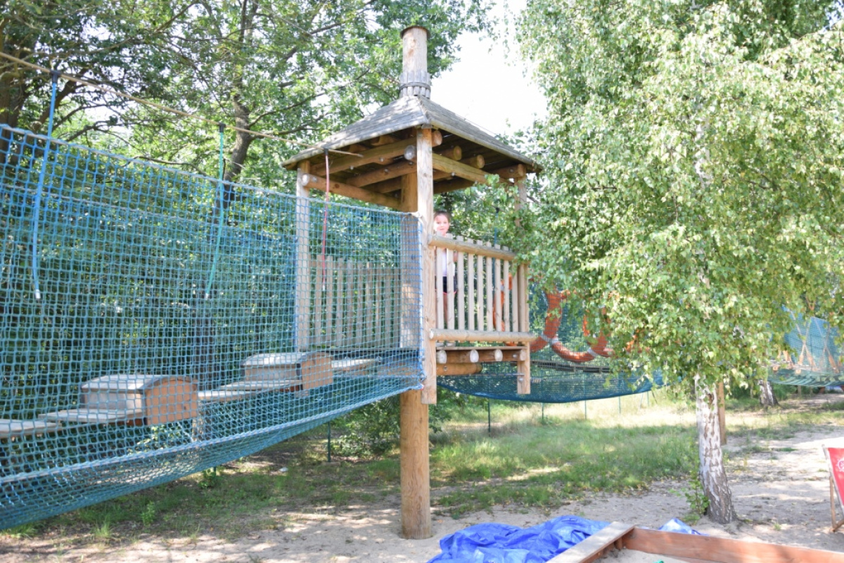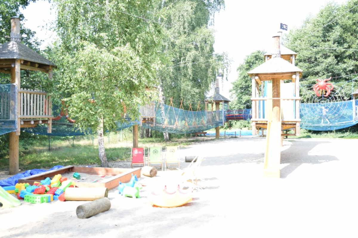 Jest również strefa zabaw - mini park: dzieci pokonują proste, kolorowe przeszkody linowe (siatki, mostki, tunele) zawieszone pomiędzy domkami zainstalowanymi na drewnianych palach. Przejście trasy odbywa się bez użycia sprzętu alpinistycznego. Zabezpieczenie stanowią̨ siatki chroniące przed upadkiem.