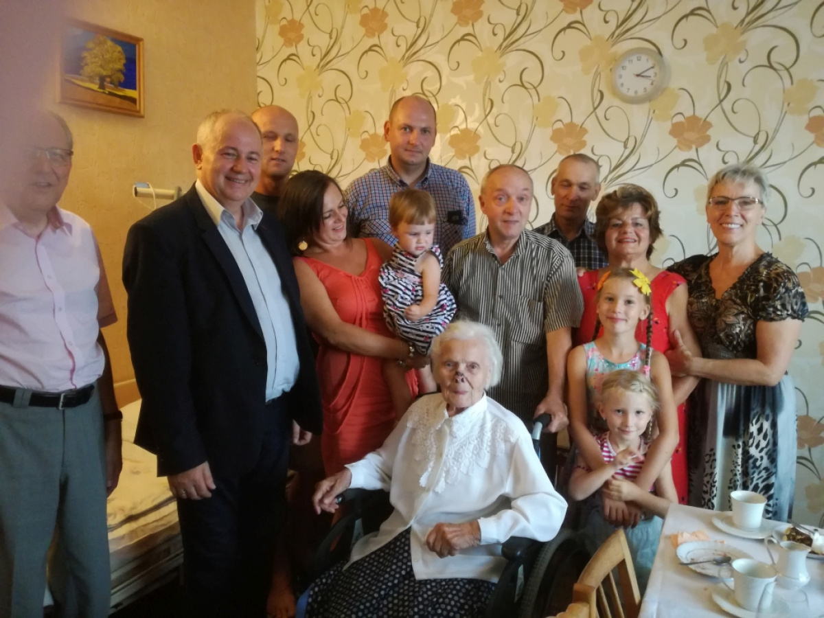 Jubileusz 93 urodzin obchodziła Pani Aniela Janus mieszkanka Leszkowy. Z tej wyjątkowej okazji w dniu 20.08.2018 r. Wójt Gminy Cedry Wielkie Pan Janusz Goliński wraz z pracownikiem socjalnym z Gminnego Ośrodka Pomocy Społecznej Panią Marzeną Konopka-Labuda udali się do Jubilatki z bukietem kwiatów oraz okolicznościowym prezentem, składając gratulacje i życzenia w imieniu własnym oraz mieszkańców.