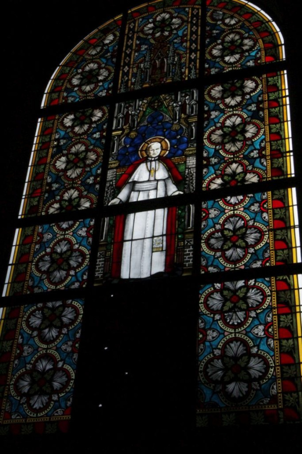 Oprócz 4 zabytkowych witraży odnowionych w kościele w ramach tych prac, dodatkowo został zamontowany nowy witraż z wizerunkiem Świętego Jana Pawła II. Portret Papieża będzie naszym znakiem pamięci o Janie Pawle II, a wkomponowanie jego postaci w witraż nie jest tylko formą atrakcyjnego zdobnictwa, w którym materiał, jakim jest szkło, zmienia się w dzieło sztuki, ale jest również formą przemiany duchowej tego co ziemskie w boskość.