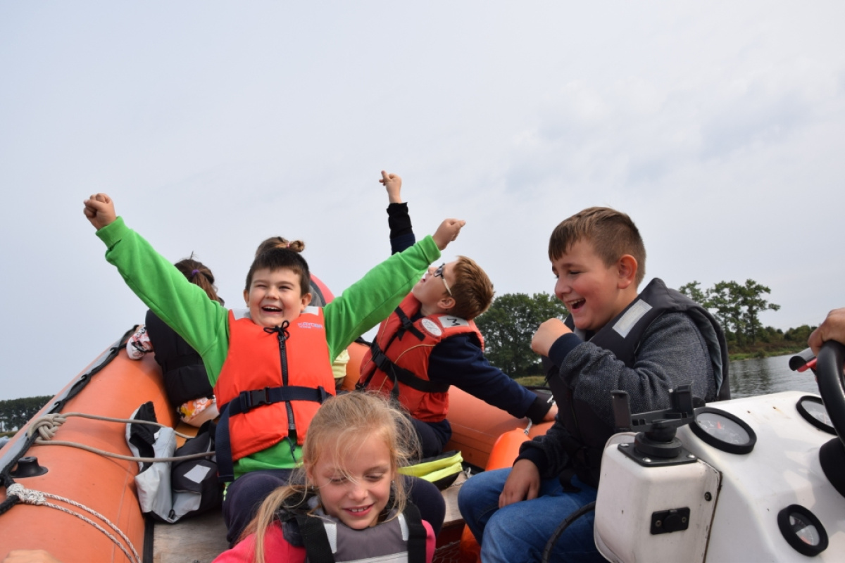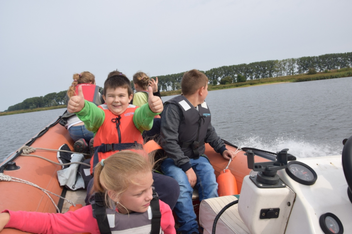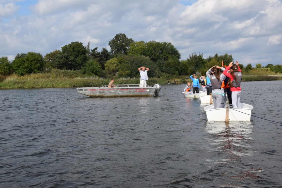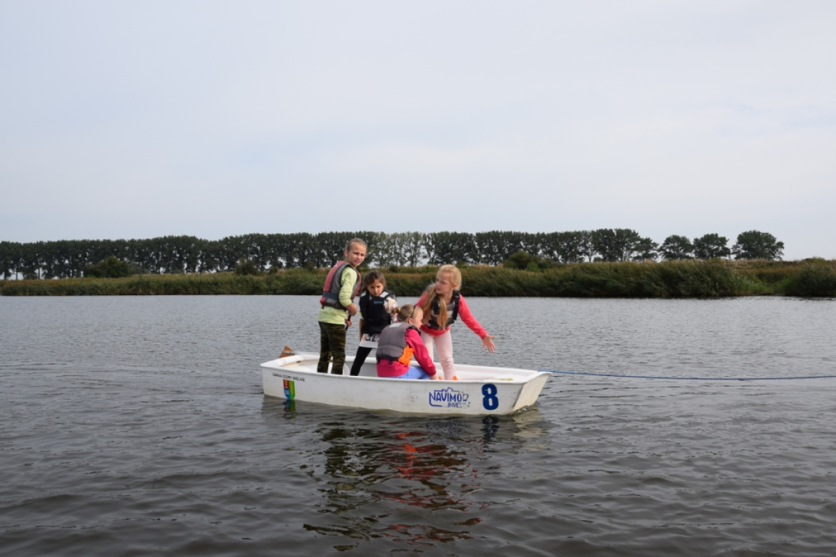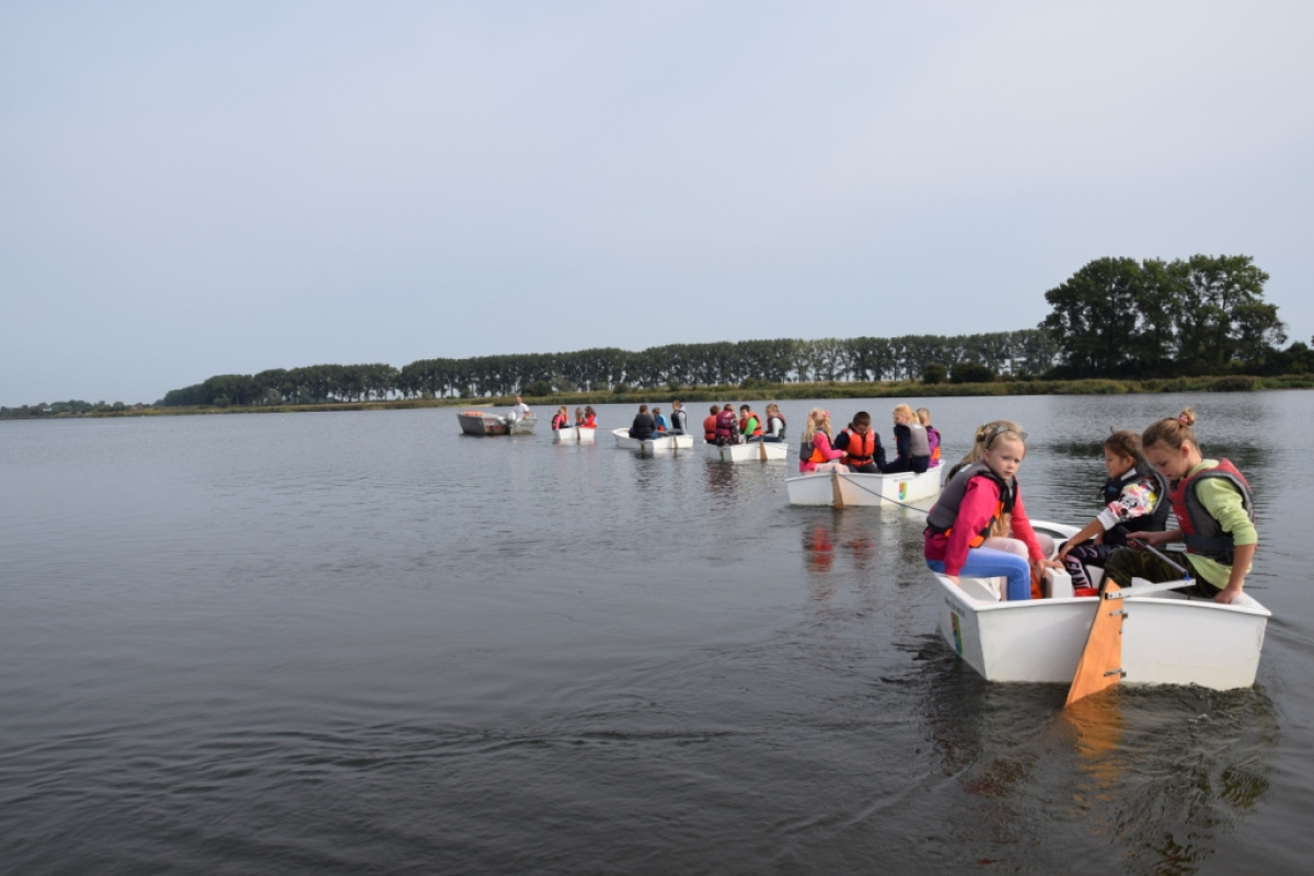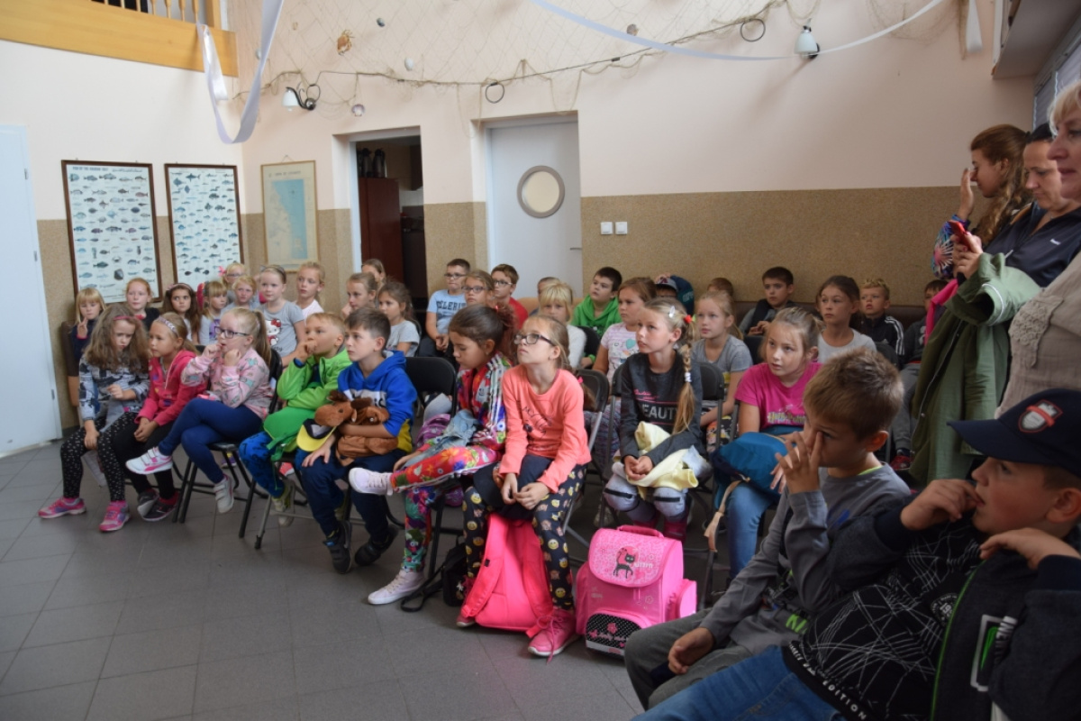 Podczas wspólnych oględzin, trener opowiadał dzieciom o przystani i szkółce, wprowadzając uczestników w tajniki ich funkcjonowania, nie zapominając przy tym o tematycznych ciekawostkach. Kolejnym krokiem ku zgłębieniu wiedzy żeglarskiej, było obejrzenia filmu, przedstawiającego sposoby żeglowania oraz prawidłowe zachowanie na wodzie i w wodzie, uwzględniając występujące przy tym niebezpieczeństwa. Po tak solidnym wprowadzeniu i nałożeniu kamizelek ratunkowych, uczniowie udali się do połączonych ze sobą sznurem łodzi klasy OPTYMIST, na których pływali po 4 osoby. W ramach oswojenia się z wodą, dzieci pod okiem trenera wykonywały na łodziach lekkie ćwiczenia fizyczne. Zakończywszy zajęcia teoretyczne oraz praktyczne, uczestnicy w grupach zwiedzili akwen z Panem Krzysztofem motorówką.