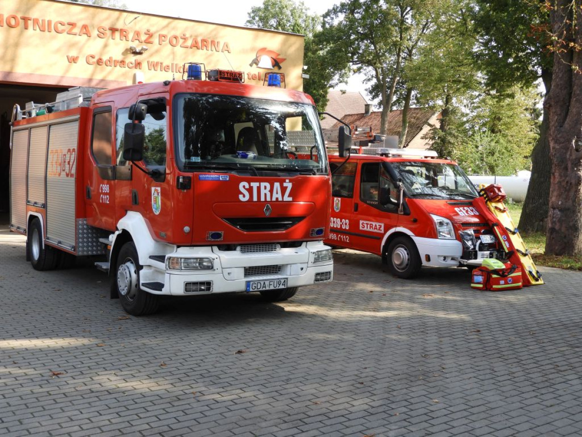 W spotkaniu ze strażakami w dniu 30 sierpnia 2018 r. które odbyło się w Urzędzie Gminy Cedry Wielkie udział wzięli Pomorski Komendant Wojewódzki PSP nadbrygadier Tomasz Komoszyński, Starostwa Powiatu Gdańskiego Pan Stefan Skonieczny oraz komendant Powiatowy PSP w Pruszczu Gdańskim mł. bryg. Jan Chodukiewicz. Umowy z ochotniczymi strażami pożarnymi podpisał Wójt Gminy Cedry Wielkie Pan Janusz Goliński. Finansowanie zapewnione zostało wspólnie z Funduszem Sprawiedliwości, którego Dysponentem jest Minister Finansów oraz Gminą Cedry Wielkie. Jednostki OSP w Cedrach Wielkich i Koszwałach są bardzo często dysponowane do wypadków na nowo budowanej drodze ekspresowej S-7, drodze wojewódzkiej i drogach lokalnych naszej Gminy i Powiatu Gdańskiego. Wyposażenie naszych jednostek szczególnie w defibrylatory znacznie podniesie ich skuteczność, szczególnie też w kontekście realizacji projektu „Bezpieczne Żuławy”, który przewiduje wyposażenie naszych OSP w ciężkie zestawy hydrauliczne do ratownictwa drogowego. Nasze jednostki OSP do tej pory podjęły już 113 interwencji, w tym 38 do zdarzeń drogowych. Do udziału w akcjach ratowniczych uprawnienia posiada 31 strażaków, w tym 10 z nich posiada szkolenie z zakresu Kwalifikowanej Pierwszej Pomocy, a kolejnych czterech w przyszłym miesiącu rozpocznie szkolenie w tym zakresie.