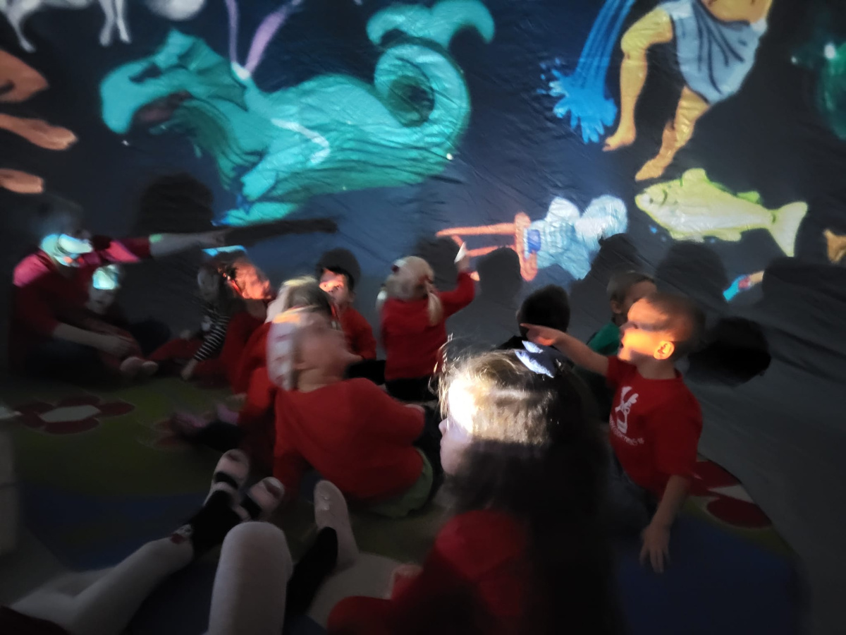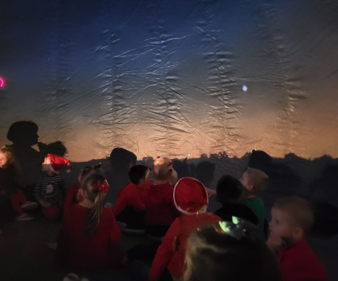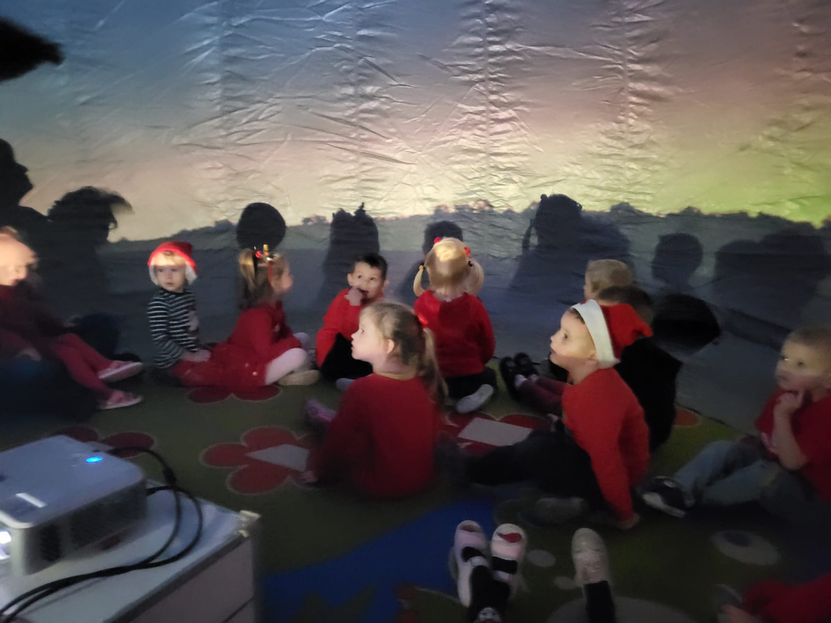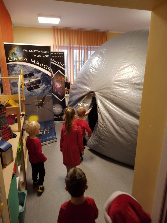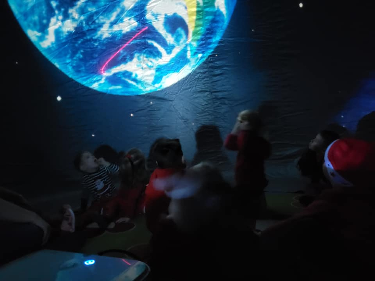 Na początku grudnia b.r. dzieci z przedszkola uczestniczyły w seansie edukacyjnym w mobilnym planetarium. Dzięki pokazom dzieci dowiedziały się i zobaczyły jak powstaje Wszechświat, galaktyki, Układ Słoneczny.