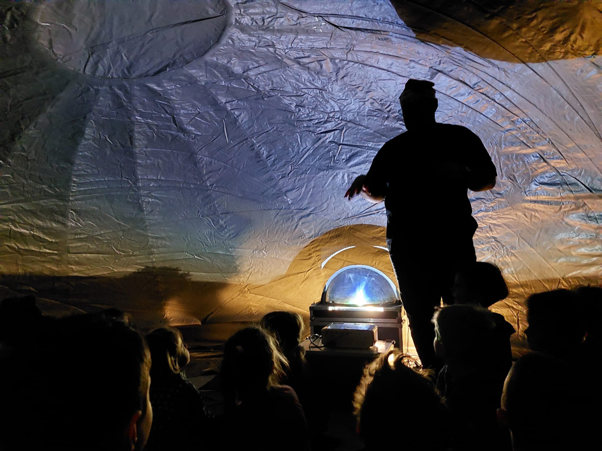 Pokaz, dla każdej z grup, odbył się w specjalnej kopule o kształcie kuli, która dawała wrażenie przestrzeni kosmicznej. Dzieci odbyły podróż przez Układ Słoneczny, przechadzały się po Marsie, lądowały na Księżycu. Mogły również poznać zjawiska związane z ruchem sfery niebieskiej, zmianą położenia planet, zaćmieniem Słońca i deszczem meteorytów. W jednej chwili przedszkolaki przeniosły się w zagadkowy świat kosmosu. Pokaz dostarczył wszystkim wiele niezapomnianych kosmicznych wrażeń. Warsztaty w mobilnym planetarium zrealizowane zostały przez partnera projektu „Mały człowiek-wielkie możliwości”, Fundację Edufun.