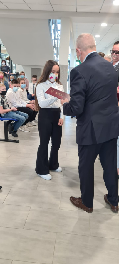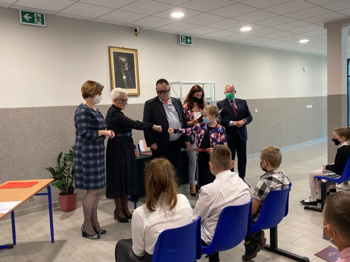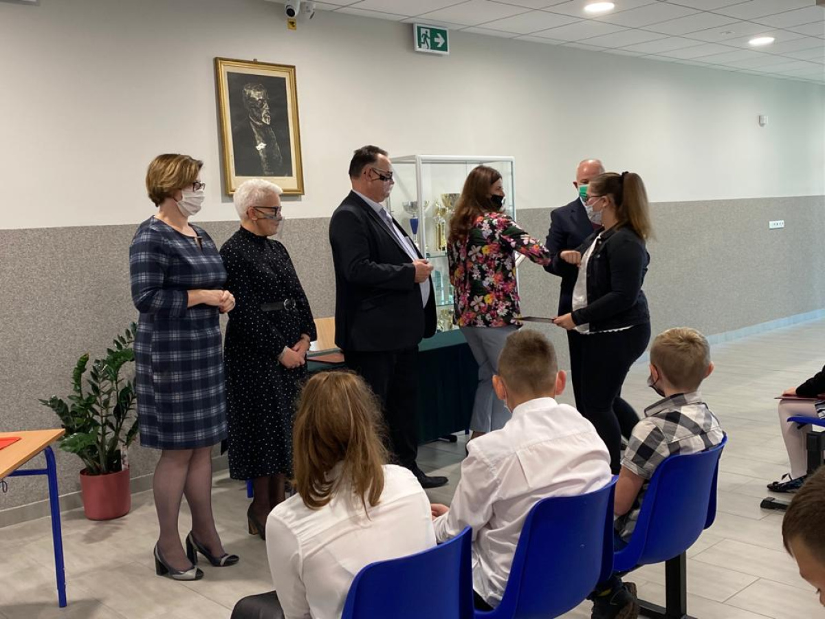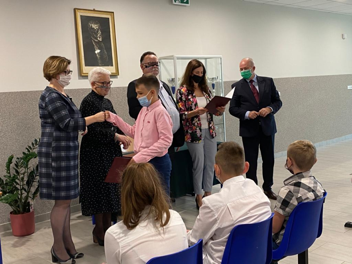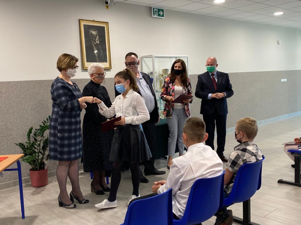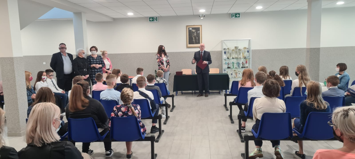 Wójt Janusz Goliński wręczył dziś wspólnie z Przewodniczącą Rady Gminy Panią Justyną Słowińską oraz dyrektorami szkół stypendia najzdolniejszym uczniom naszej gminy. Wyróżniono 28 osób, wśród których jest dwoje uczniów nagrodzonych za wybitne osiągnięcia sportowe. Uroczyste wręczenie stypendiów odbyło się w gościnnych progach Szkoły Podstawowej w Cedrach Wielkich.