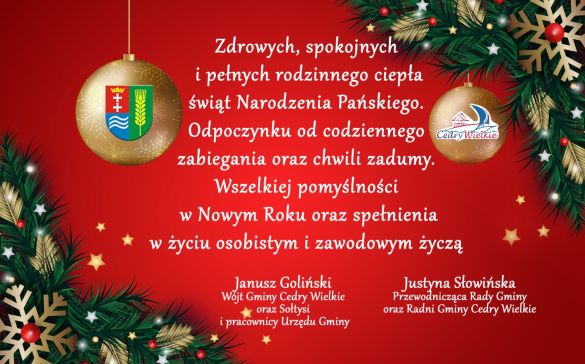 Wczoraj wójt Janusz Goliński i przewodnicząca Rady Gminy Justyna Słowińska byli gospodarzami świątecznego spotkania, w którym uczestniczyli nasi samorządowcy, sołtysi, ale przede wszystkim przyjaciele gminy Cedry Wielkie, bez zaangażowania których realizacja wielu inicjatyw nie byłaby w ogóle możliwa.